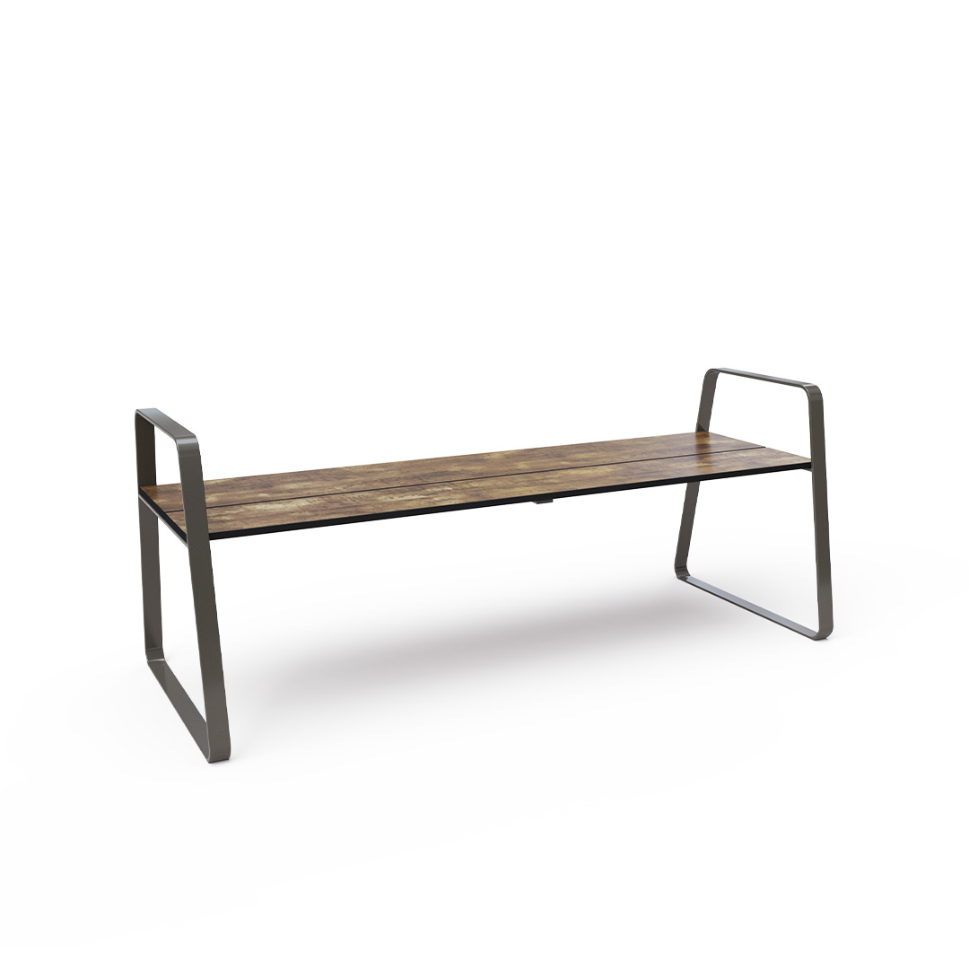 A designer park bench suitable not only for outdoor areas such as parks, playgrounds, and squares but also for indoor spaces like shopping centers, airport terminals, lobbies, and more.