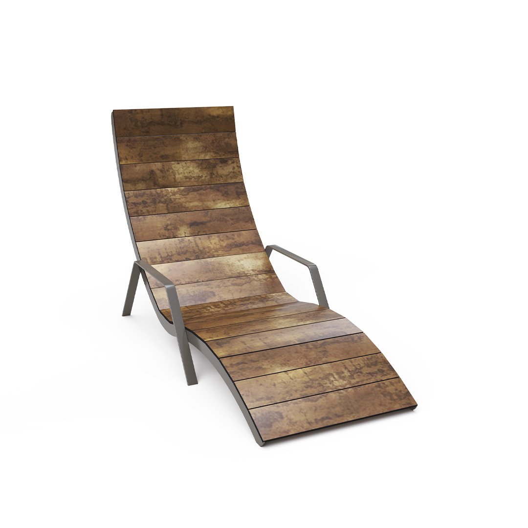 A designer lounge chair suitable for relaxation areas, primarily intended for outdoor spaces such as parks and playgrounds, but also suitable for indoor environments like shopping centers, airport terminals, and more.