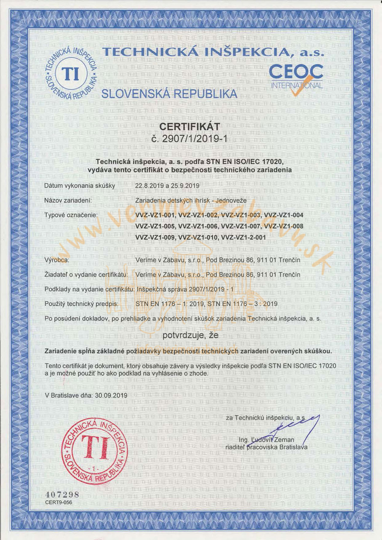 The combined tower set VVZ-VZ1-006 is certified according to STN EN 1176.
