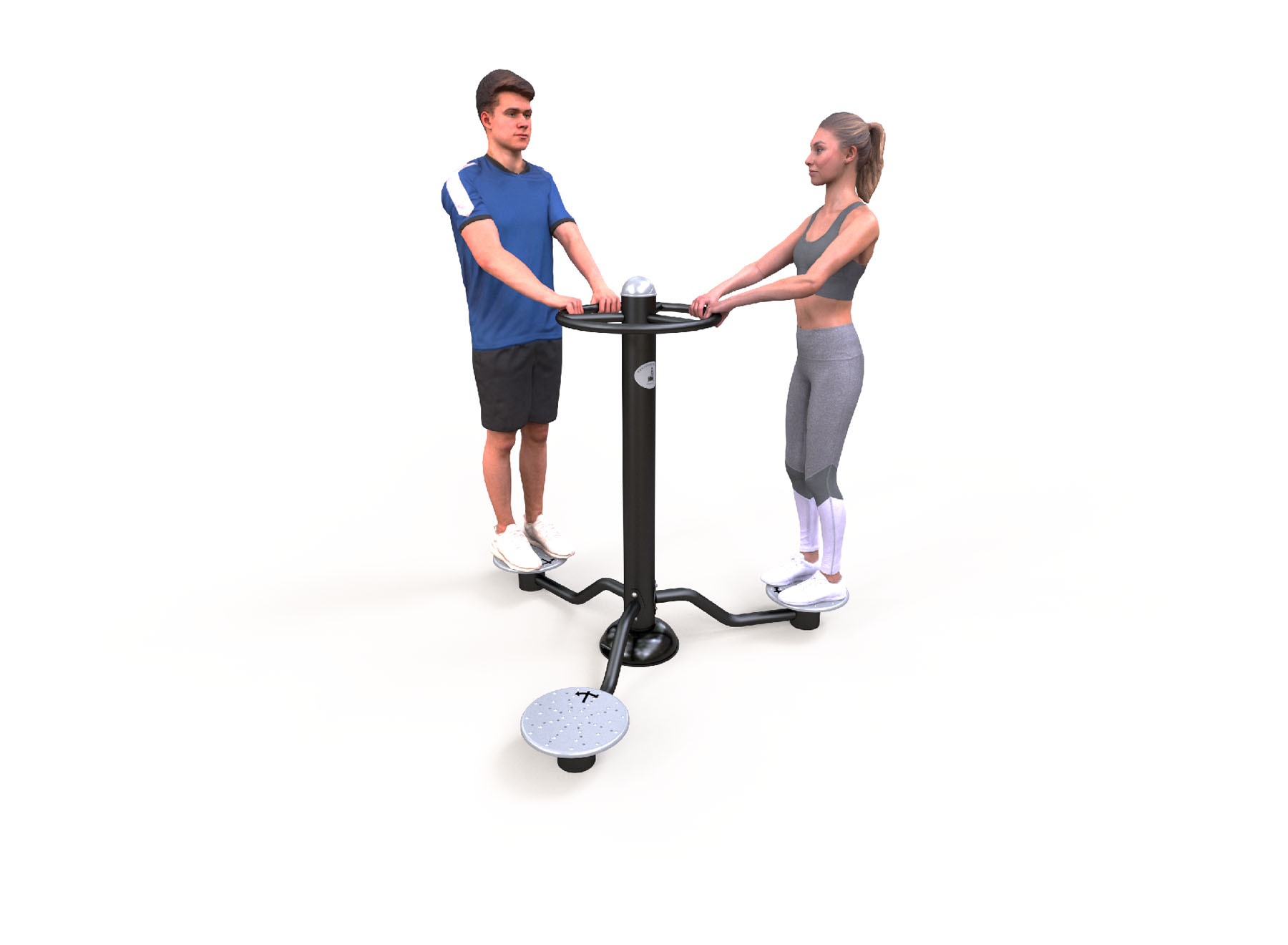 So geht's: Halten Sie die Haltestange mit beiden Händen fest, stellen Sie beide Füße auf die Drehplattform und drehen Sie Ihre Beine im Stehen mit Hilfe Ihrer Bauchmuskulatur von einer Seite zur anderen. Führen Sie die Drehungen nicht zu ruckartig aus. Führen Sie die Bewegungen langsam und kontrolliert aus. Steigern Sie die Anzahl der Übungen schrittweise, sobald sich Ihre Fitness verbessert.