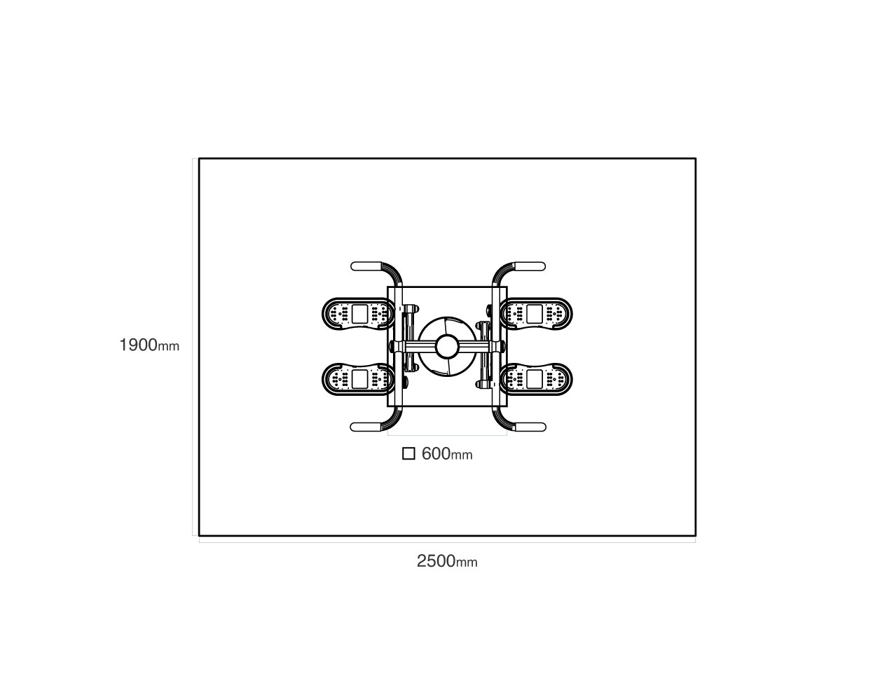 Safety zone: 1,9 × 2,5 m