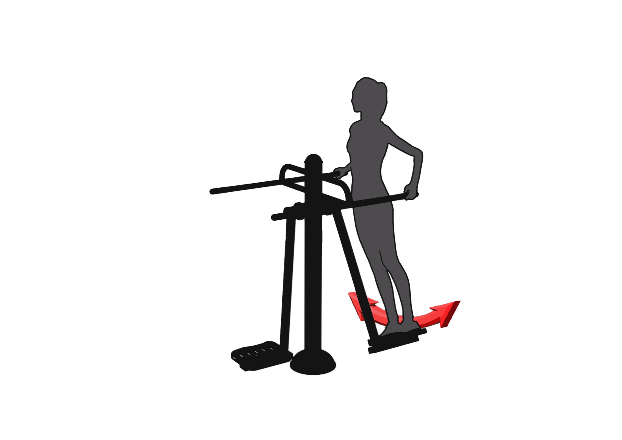 How to exercise - grasp the handles and brace yourself, keeping the upper part of your body still. Place both feet on the pendulum platform. Gently sway your hips from side to side while keeping the upper body stationary. Swing only to a height that is comfortable and pleasant for you. Perform slow and controlled movements during the exercise. Gradually increase the number of repetitions as your fitness improves.