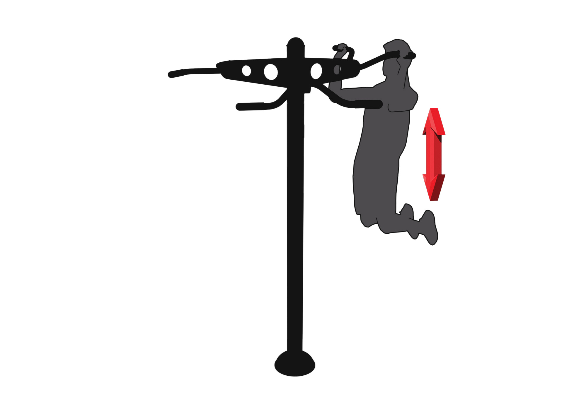 How to exercise - stand facing the equipment. Grip the bars with both hands and lift yourself off the ground. Slowly bend both arms at the elbows, lifting your shoulders and head above the bars. Gradually lower yourself down and exhale. Perform smooth and controlled movements in both directions. Gradually increase the number of repetitions as your fitness improves.