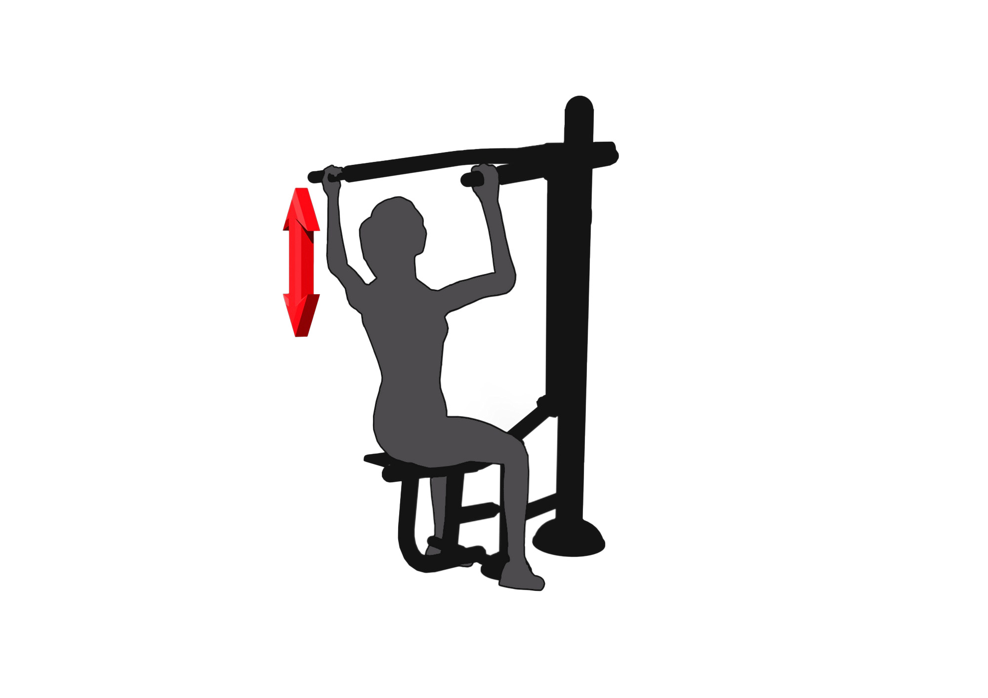 How to exercise - Sit on the seat with your back straight and face the device. Firmly grasp both handles. Slowly pull the handles down until your hands are at chest level. Slowly return the handles to the starting position. Inhale as you move your hands downward, and exhale as you move them upward. Perform smooth and controlled movements. Gradually increase the number of repetitions as your fitness improves.