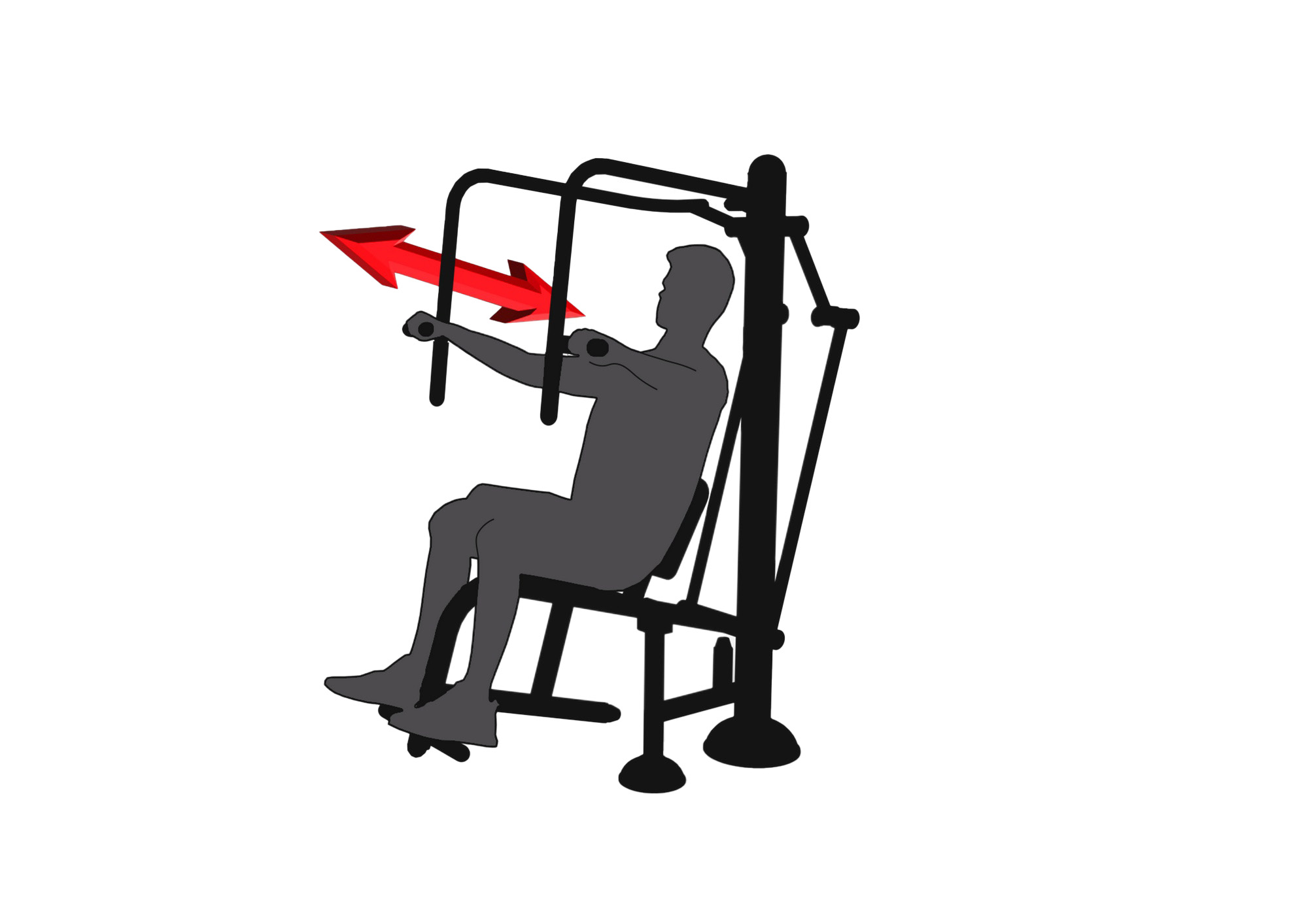 How to exercise - Sit upright on the seat and ensure your back is straight. Place your feet on the footrests. Grasp both handles in front of you and push forward until your arms are almost fully extended and straight. Slowly return your arms to the starting position. Exhale as you push forward, and inhale as you return. Perform smooth and controlled movements. Gradually increase the number of repetitions as your fitness improves.