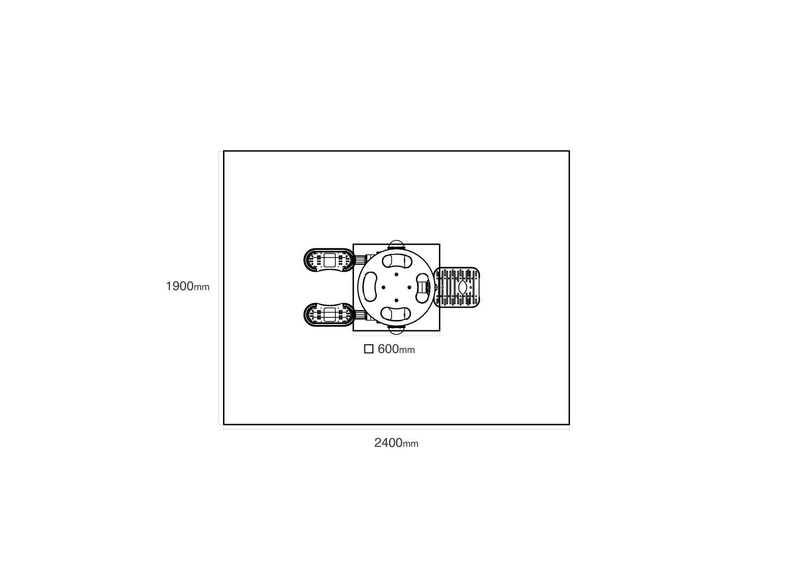 Safety zone: 1,9 × 2,4 m