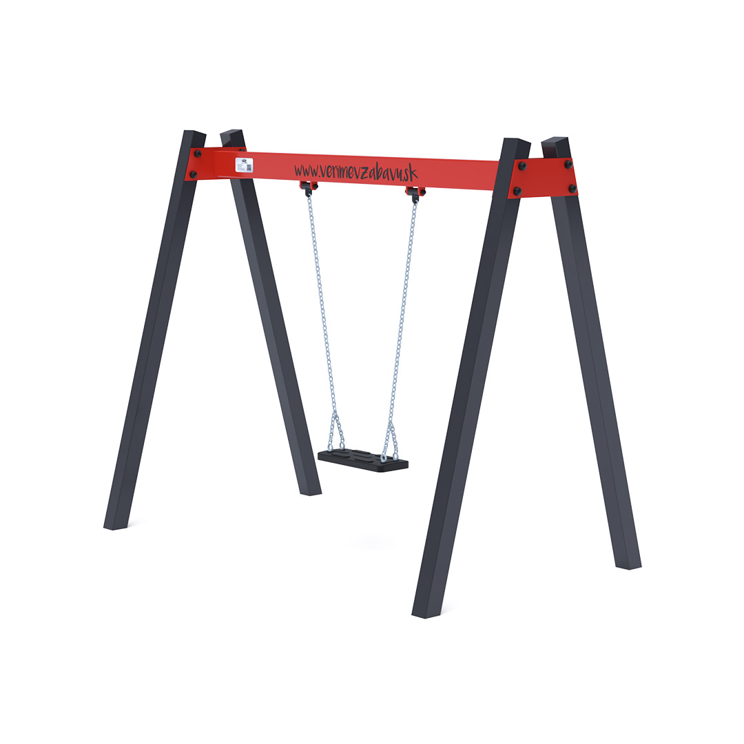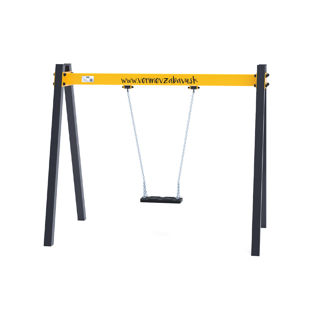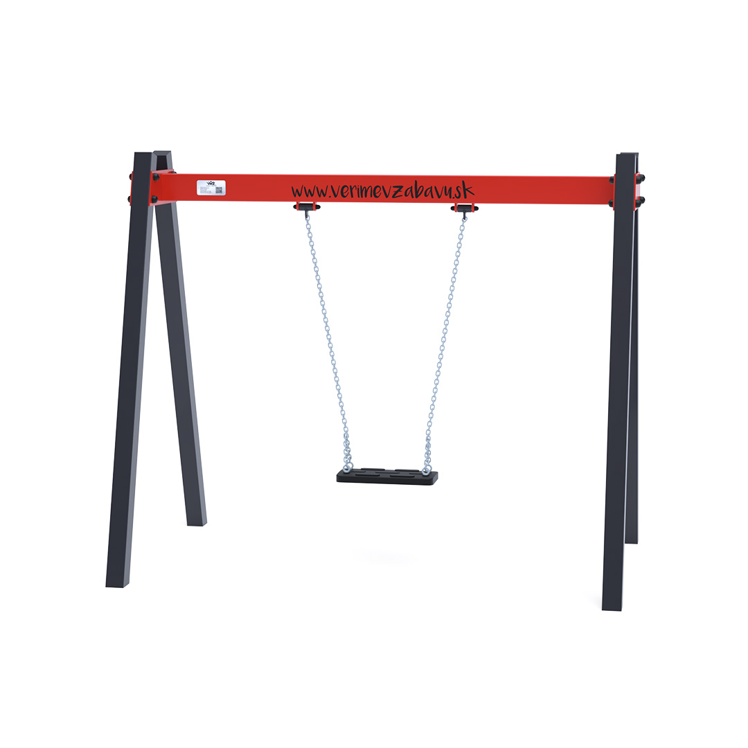 The hanging swing for one child is made from hot-dip galvanized steel, coated with powder-baked paint. The connecting materials are stainless steel, covered with plastic caps to enhance durability and safety. The VVZ-VH001 swing is certified according to the STN EN 1176 standard. A grass grid mat is recommended as the impact surface.