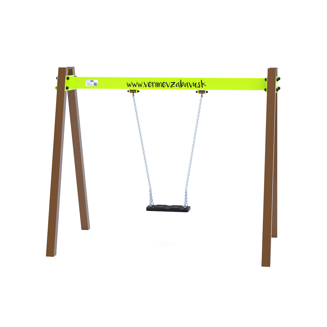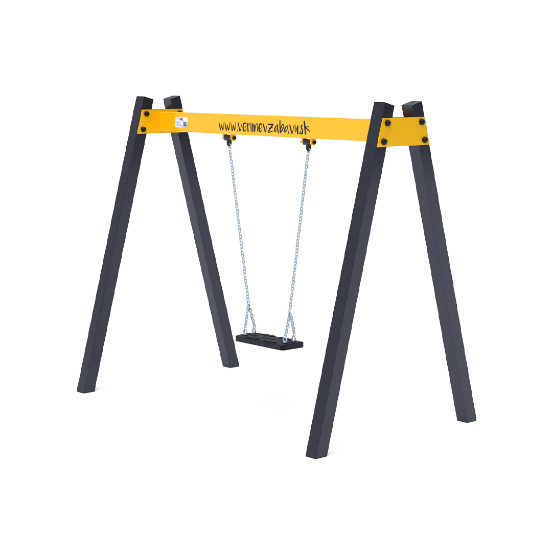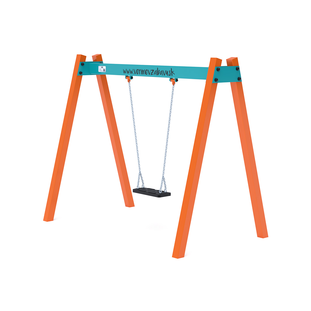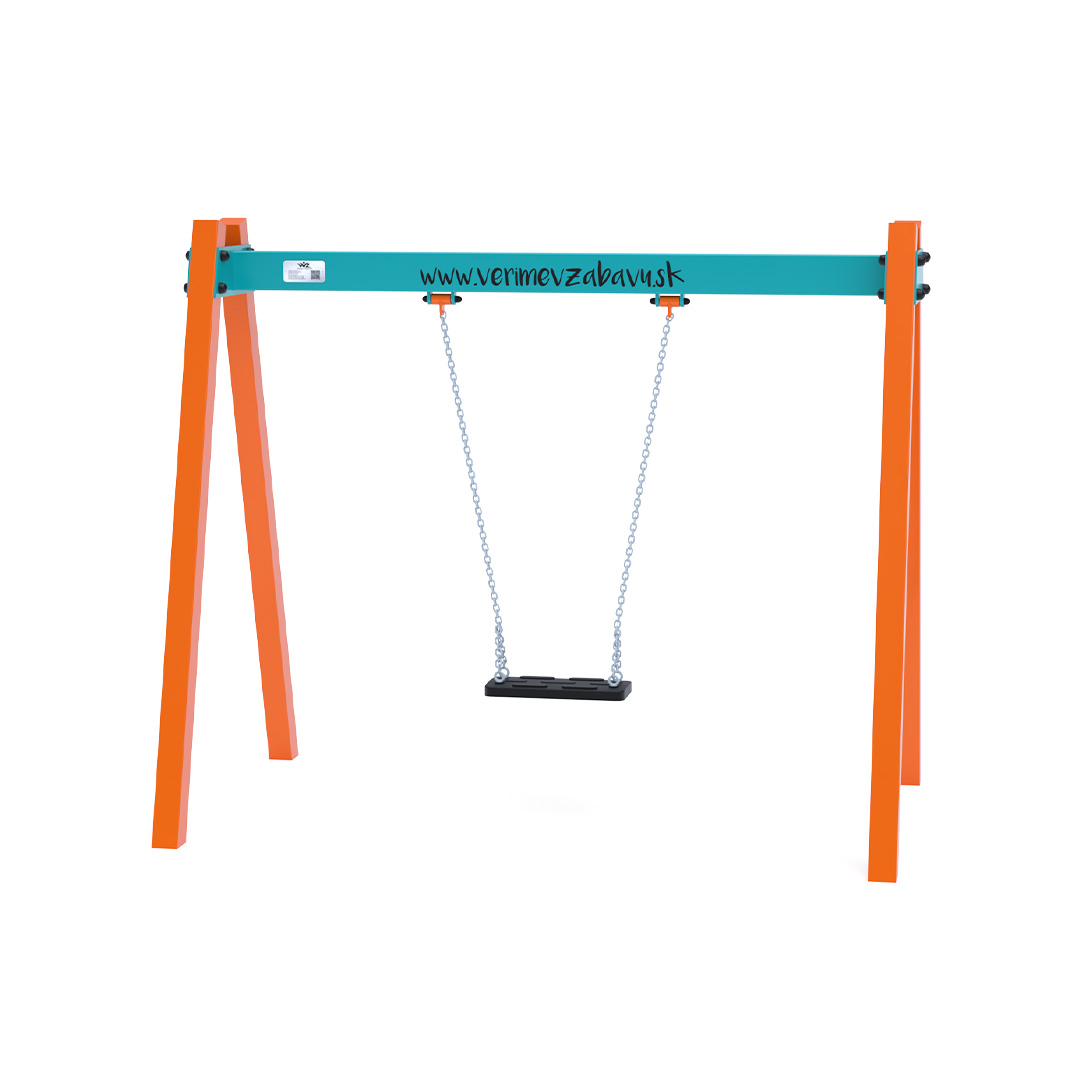 The hanging swing for one child is made from hot-dip galvanized steel, coated with powder-baked paint. The connecting materials are stainless steel, covered with plastic caps to enhance durability and safety. The VVZ-VH001 swing is certified according to the STN EN 1176 standard. A grass grid mat is recommended as the impact surface.