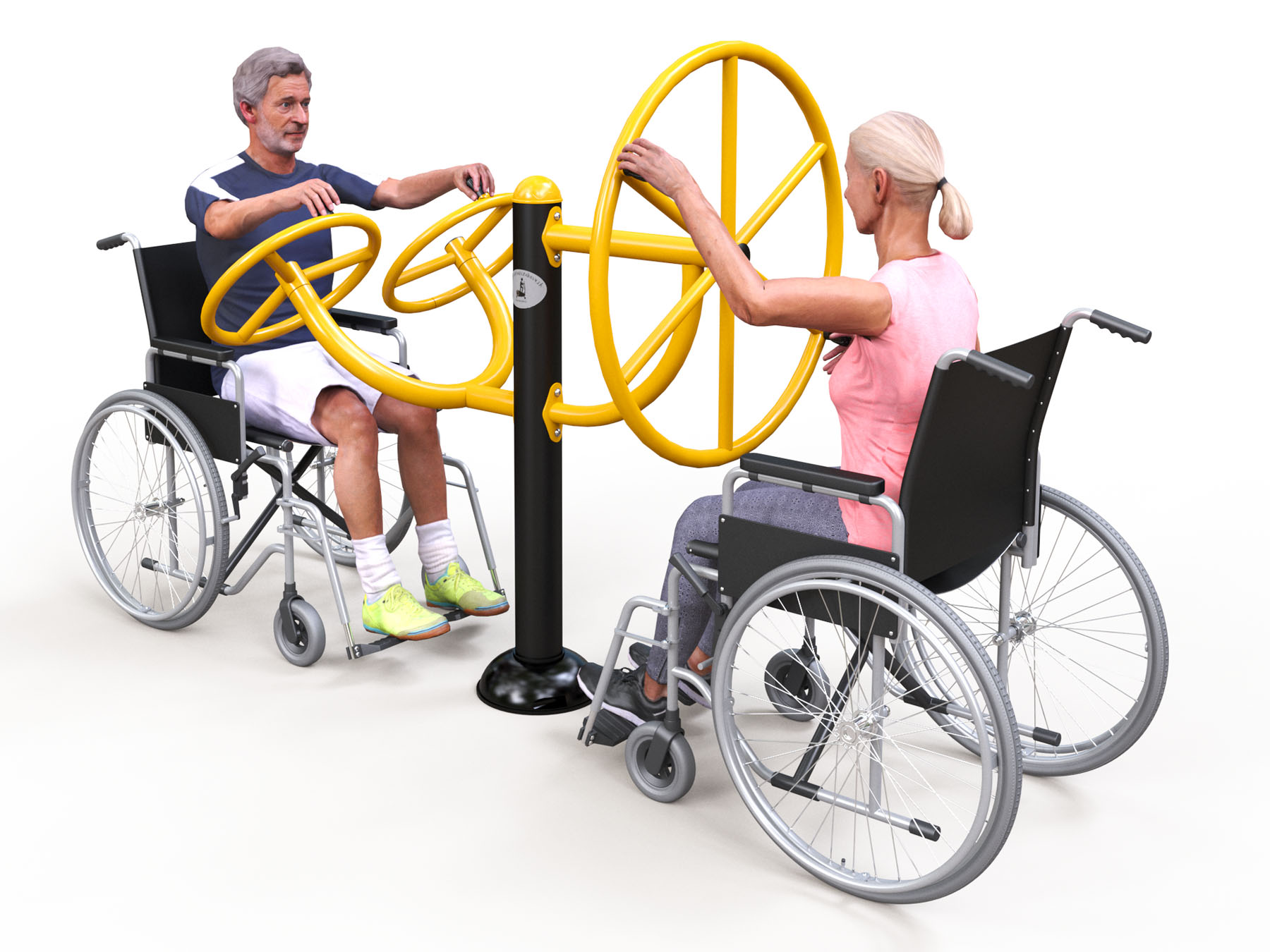 HF14 outdoor fitness equipment for people with disabilities – is designed for exercising the upper limbs with circular movements at two different stations. The minimum required area for placing the machine must be 4300 x 3900 mm.