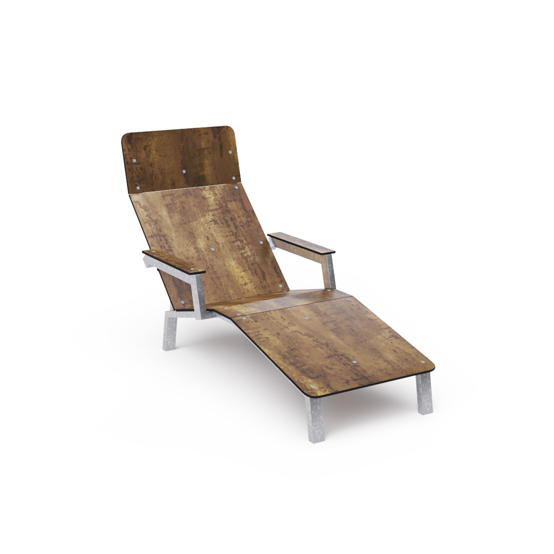 A designer lounge chair suitable for relaxation zones, primarily intended for outdoor use parks, playgrounds but also for indoor use shopping centers, airport terminals, etc.