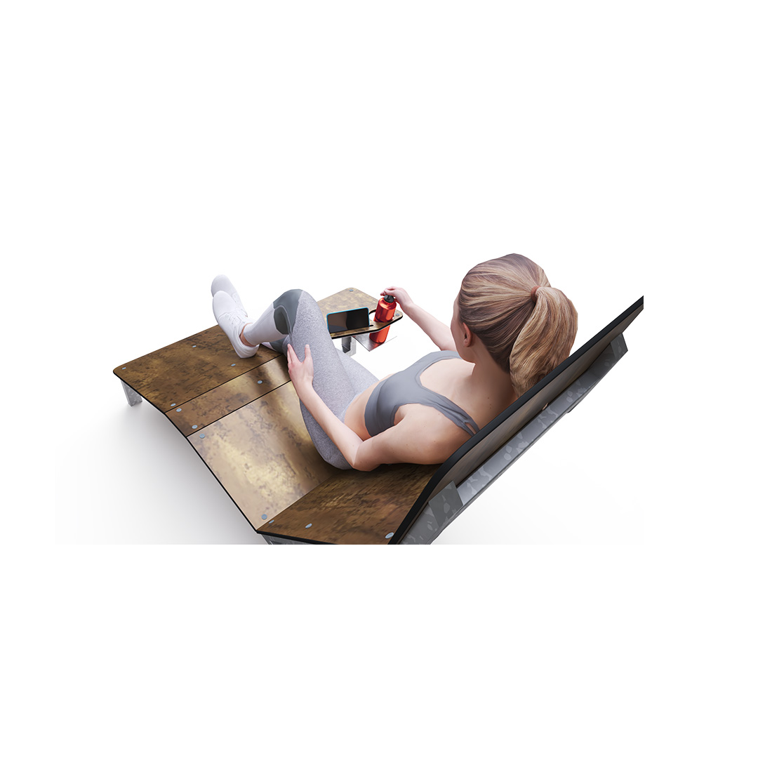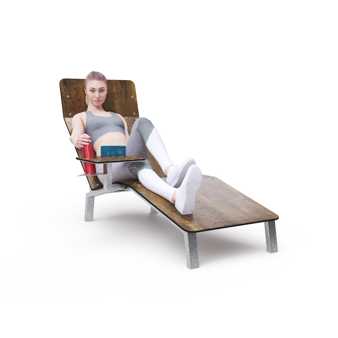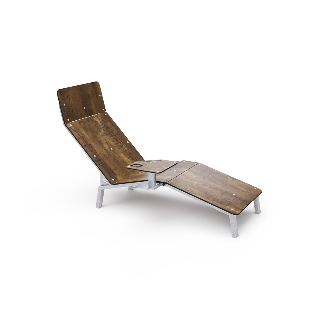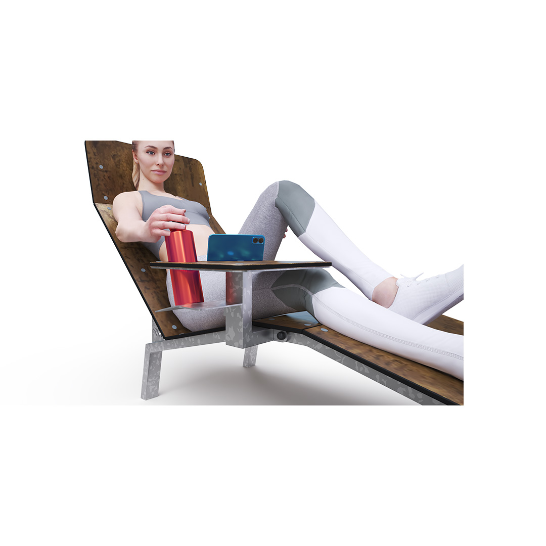 The construction is made of steel treated with hot-dip galvanization. The seats and backrests are made from 19mm thick HPL material with a natural pattern. All connections are stainless steel. This combination of materials ensures durability and a long lifespan.