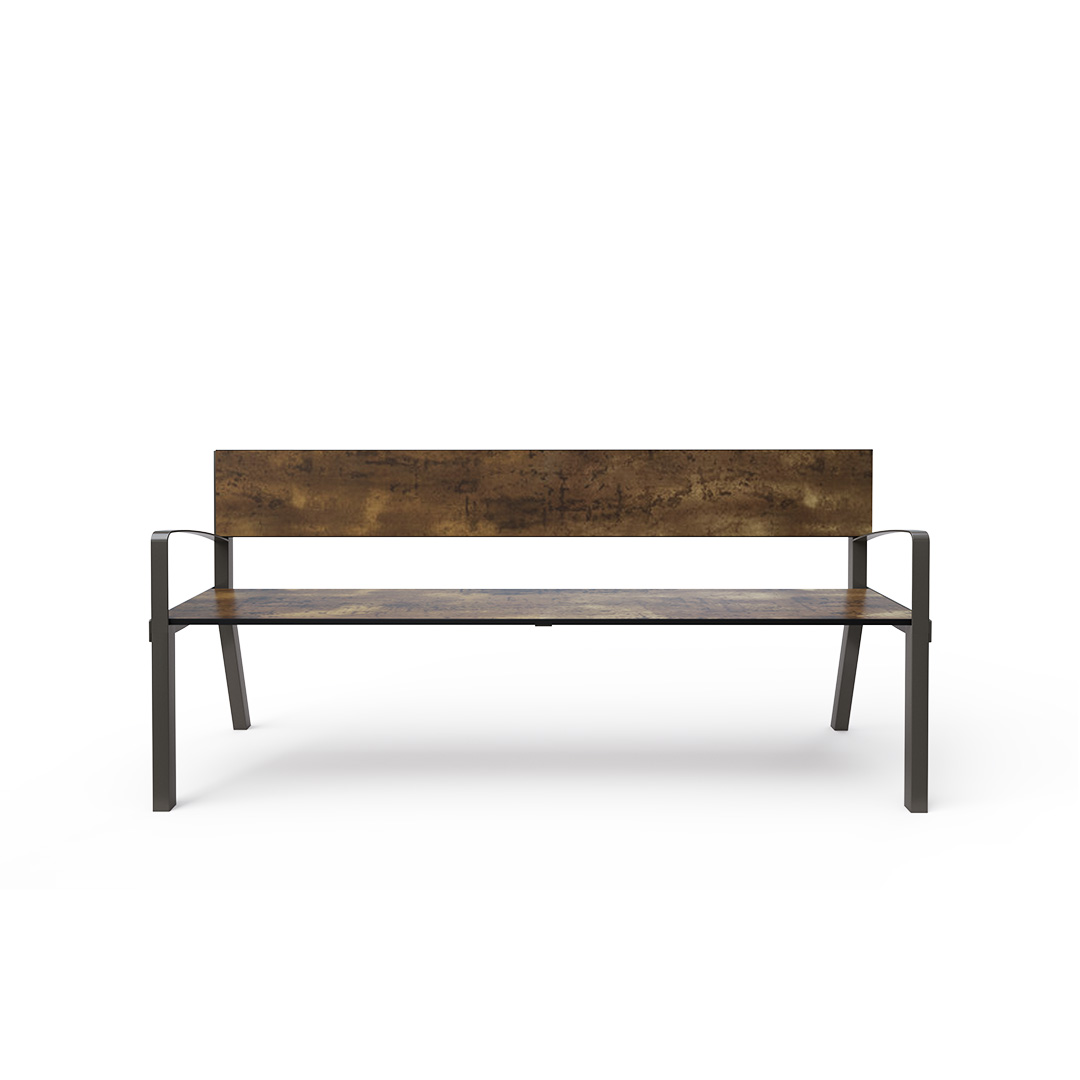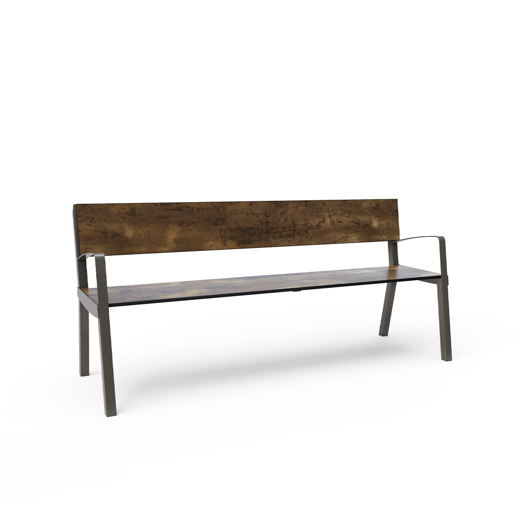 A designer park bench with a backrest, suitable not only for outdoor use - parks, playgrounds, squares but also for indoor use - shopping centers, airport terminals, entrance halls, etc.