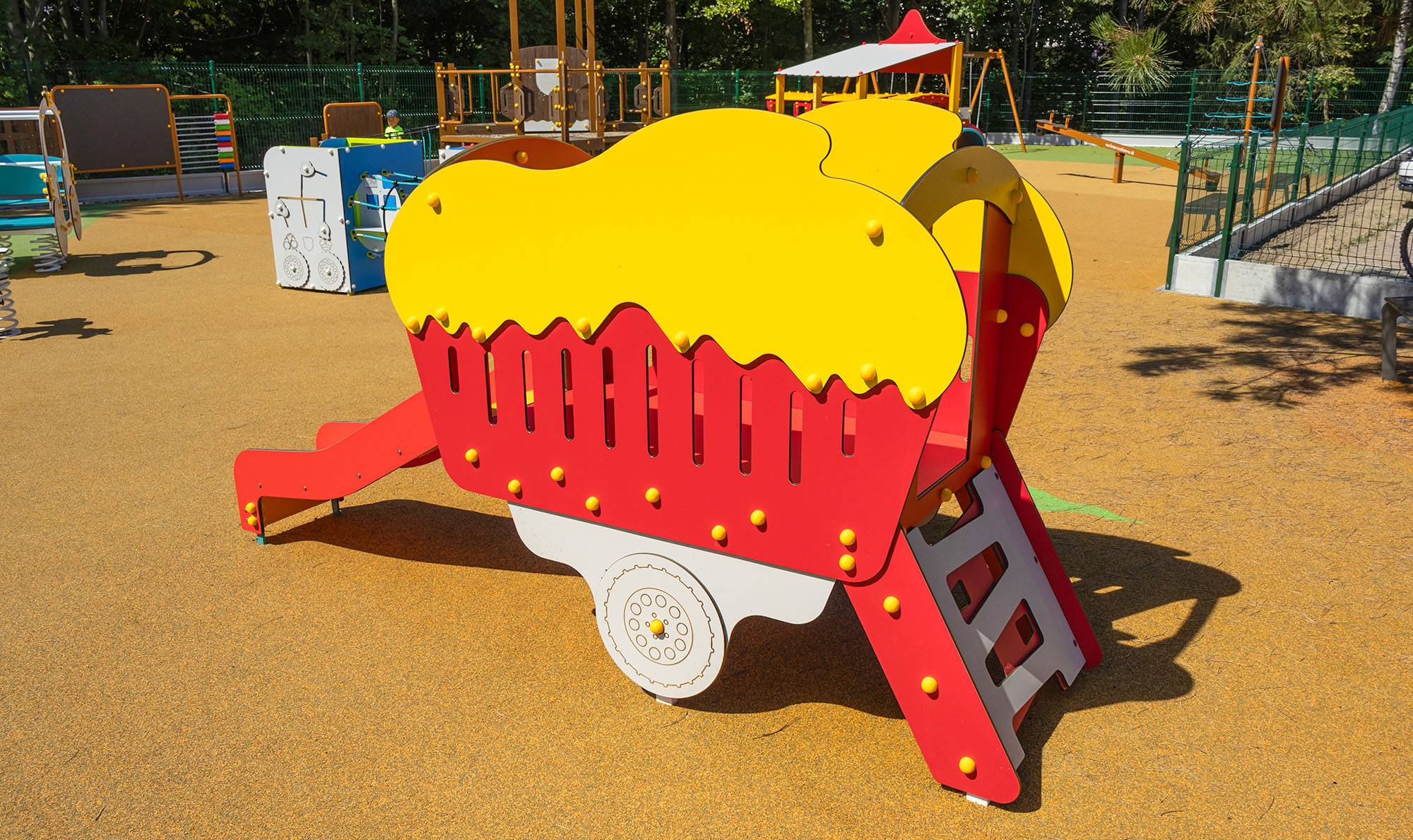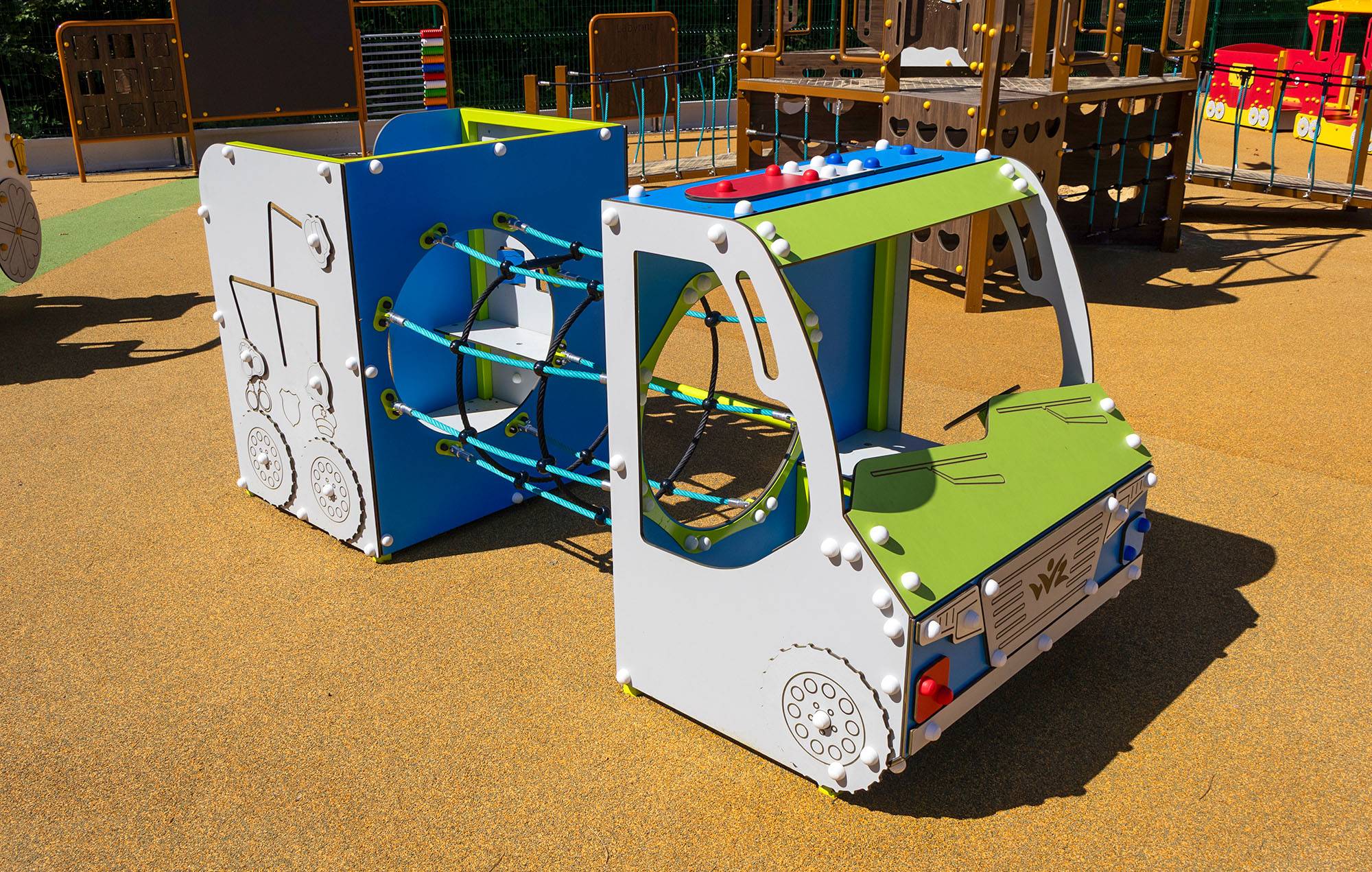 The playground is full of various game elements that combine movement, imagination and shared play: