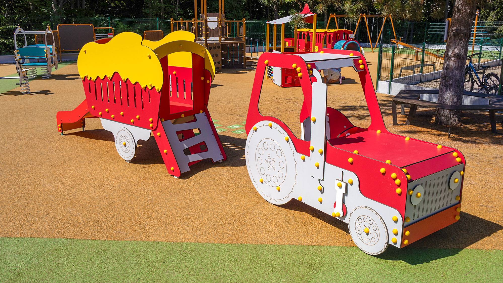 Of course, we also thought about adults. There are benches for sitting near the individual elements, where parents can relax while their children discover the world of games.