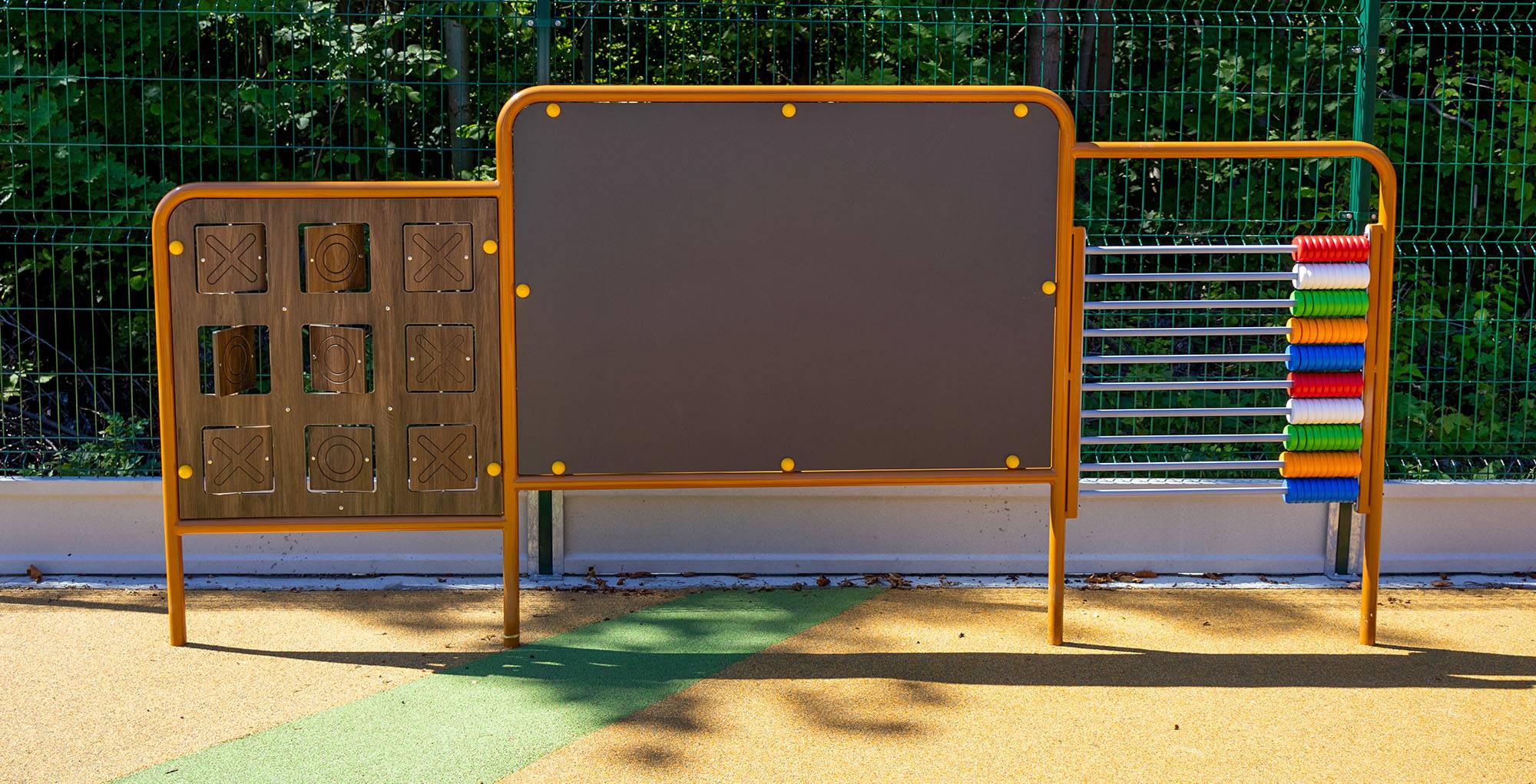 The educational part of the playground consists of interactive panels - tic-tac-toe, a large drawing board, an abacus, the alphabet and numbers, which develop creativity and logical thinking.