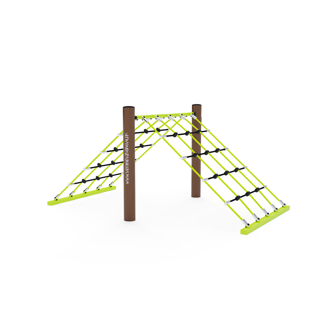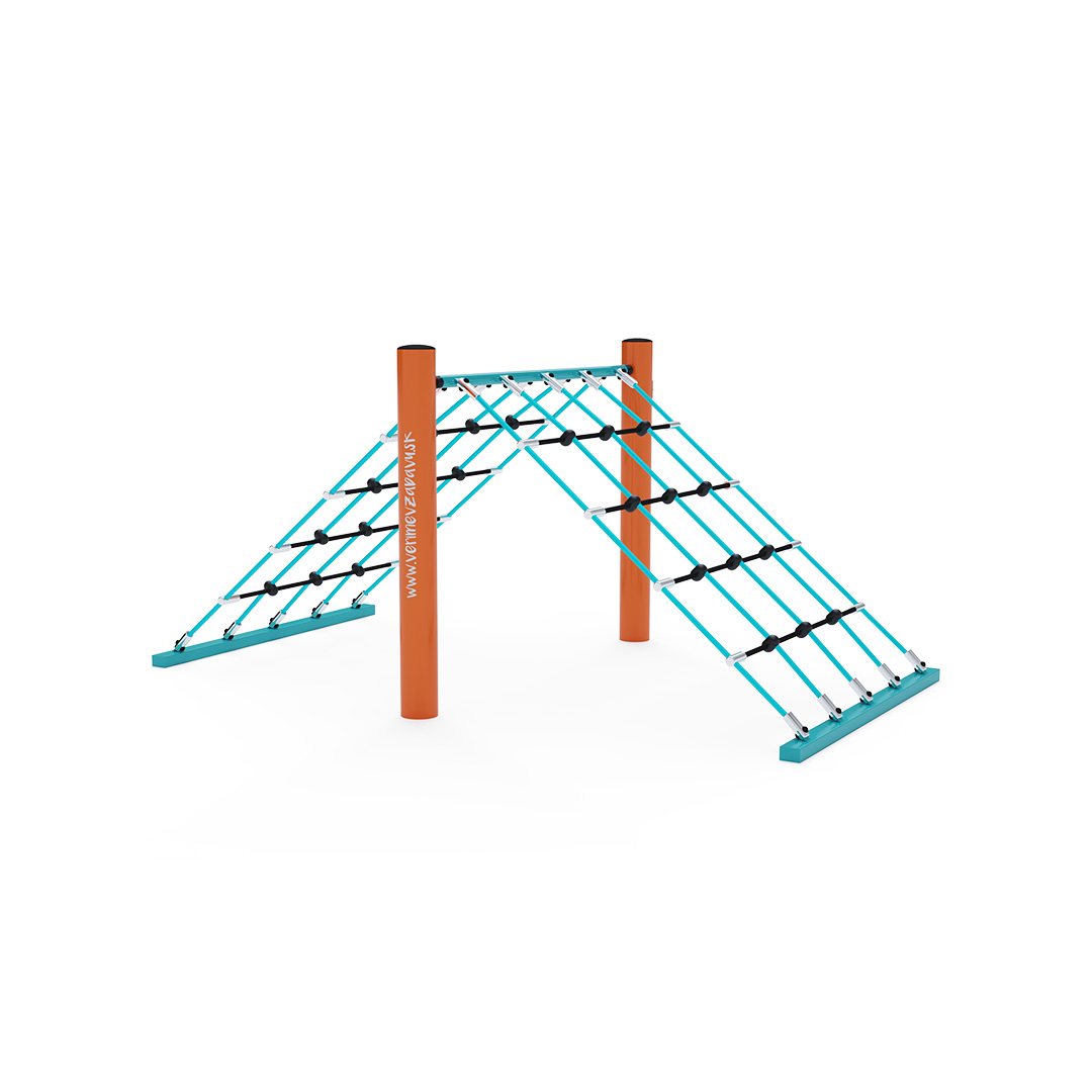 The rope structure - a high mountain that needs to be conquered immediately. Children's imagination knows no bounds; they can play as climbers, Indians, or stunt performers. The rope play element is made of hot-dip galvanized steel with a quality surface finish, and the joints are stainless steel and covered with plastic caps to increase the safety and longevity of the connections. The ropes are made of polyester fibers, which are wound around a central core. This construction of the rope increases its strength and resistance to mechanical stress. Polyester itself has many positive properties. It is resistant to microorganisms and weather conditions, dries quickly after rain, is colorfast, and is characterized by high strength. The VVZ-LP003 rope structure is certified according to the STN EN 1176 standard.