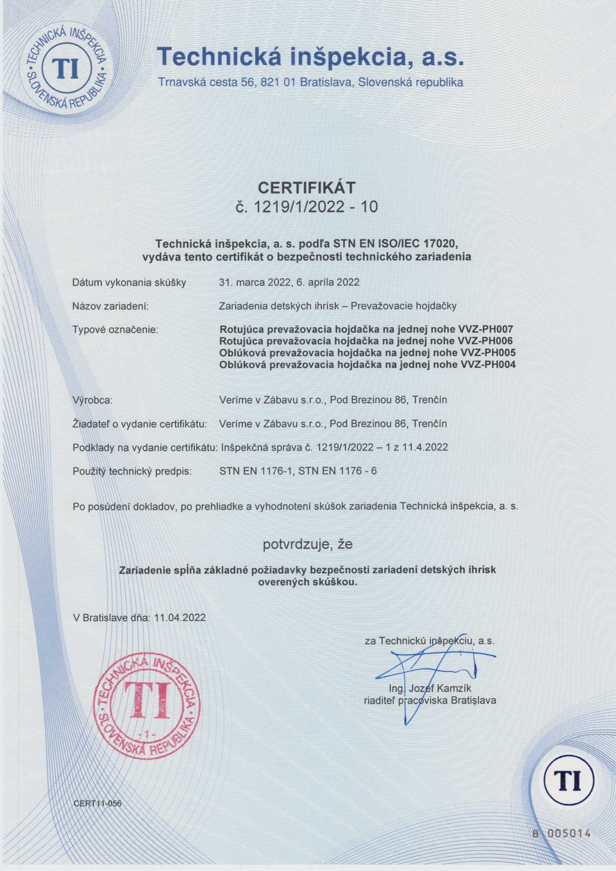 Rotating Single-leg Seesaw VVZ-PH007 is certified according to STN EN 1176.
