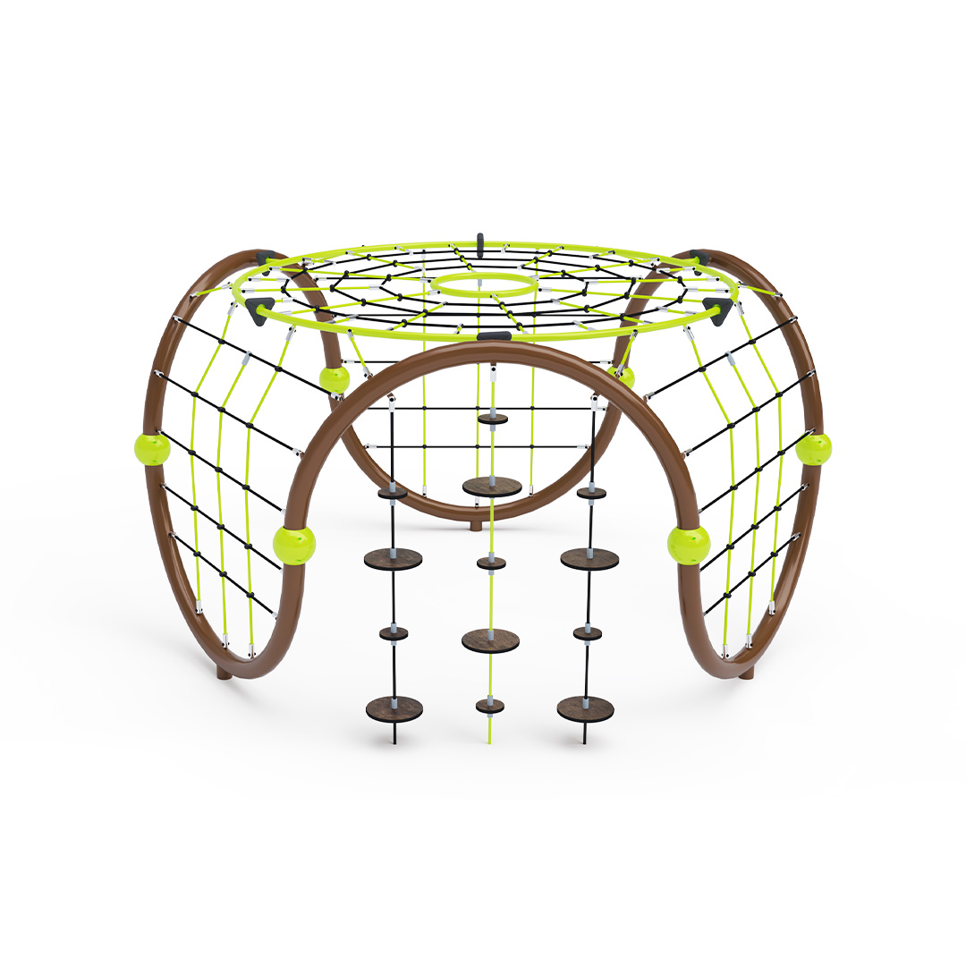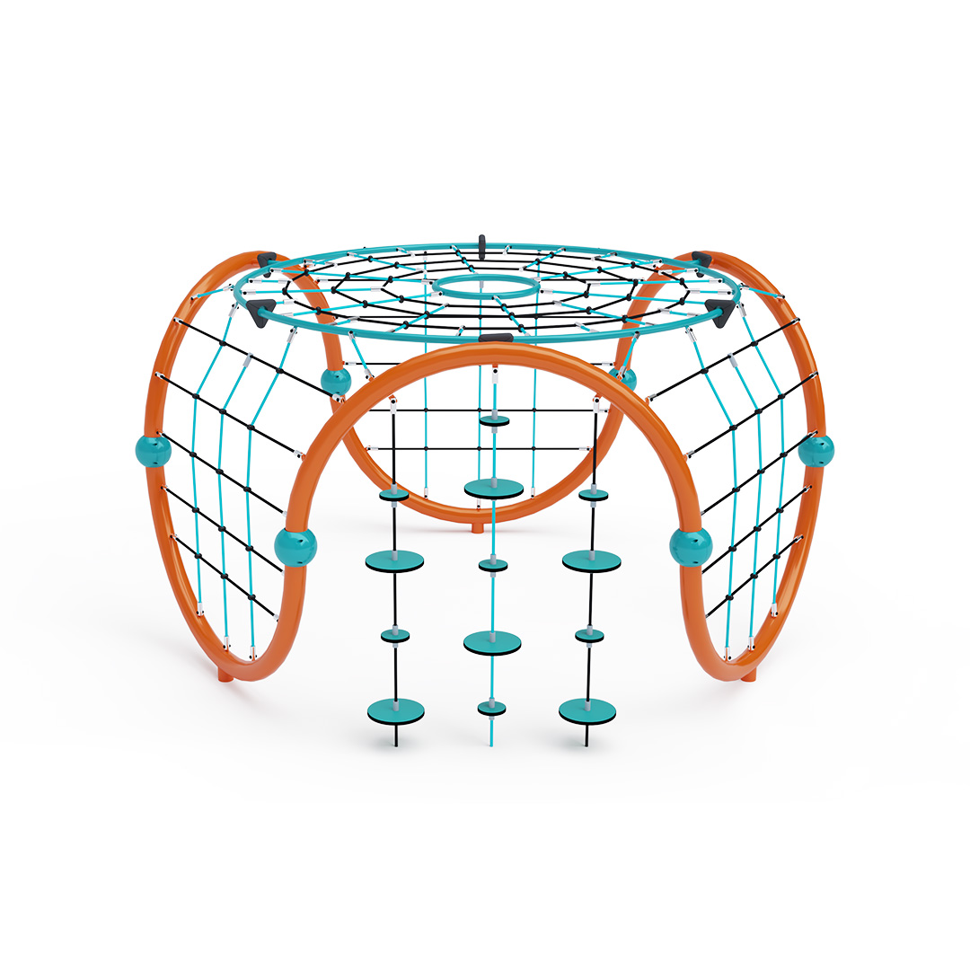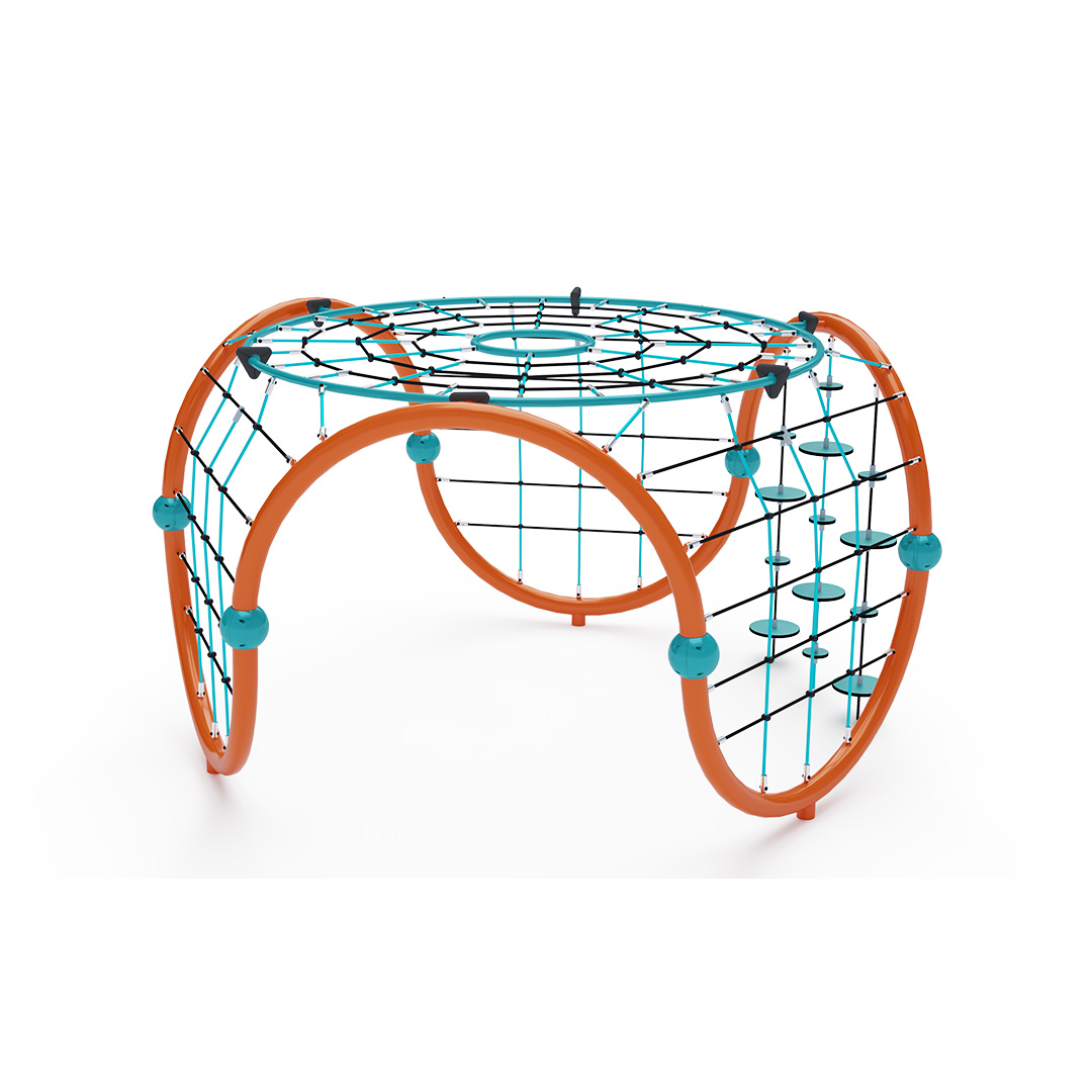 The small rope igloo features three side rope nets and one "roof" rope net supplemented with hanging balance stones. The play element is made of galvanized steel with a quality surface finish - powder coating. Joints are stainless steel and covered with plastic caps to enhance safety and durability. Ropes are made of polyester fibers with a steel core, wound around the center. This rope construction increases its strength and resistance to mechanical stress. Polyester itself has many positive properties: it is resistant to microorganisms and weather conditions, dries quickly after rain, is colorfast, and exhibits high strength.