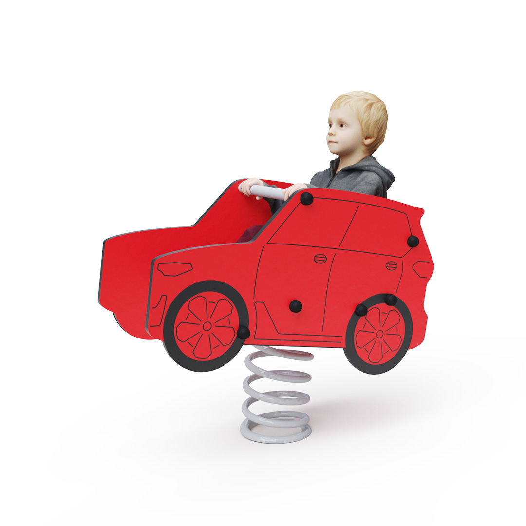 Materials and construction of the spring rocker with a car motif ensure long life and safety. The steel spring with a durable surface treatment and HPL material guarantee durability, color stability, and safety. HPL material is chemically resistant, UV resistant, non-toxic, recyclable, and shatterproof, ensuring children are protected from sharp edges or fragments. Spring rockers can be placed on grass, playgrounds with gravel or sand, or you can use a grass reinforcement mat, rubber mat, or EPDM underneath. All spring rockers comply with the safety standard STN EN 1176.
