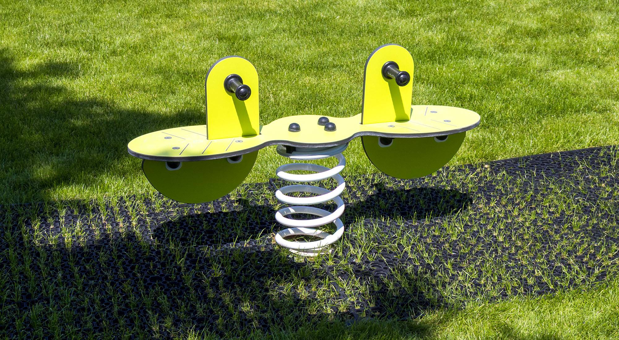 Materials and construction of the spring rocker with a clover motif ensure long life and safety. The steel spring with a durable surface treatment and HPL material guarantee long life, color stability, and safety. HPL material is chemically resistant, UV resistant, non-toxic, recyclable, and shatterproof, ensuring that children are protected from sharp edges or fragments. Spring rockers can be placed on grass, playgrounds with gravel or sand, or you can use a grass reinforcement mat, rubber mat, or EPDM under the rocker. All spring rockers comply with the safety standard STN EN 1176.