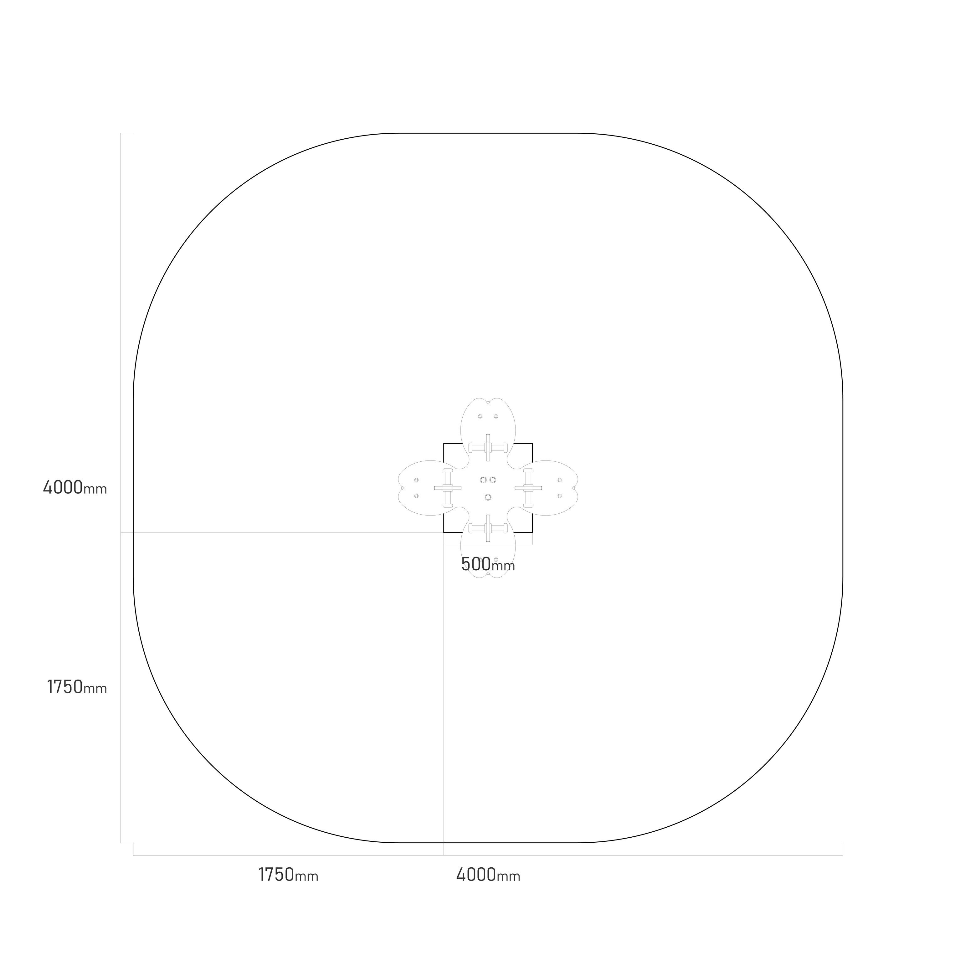 Impact Area: 4,0 x 4,0 m (according to STN EN 1176-1) Material: Galvanized and powder-coated steel, 19mm thick HPL material, stainless steel fasteners