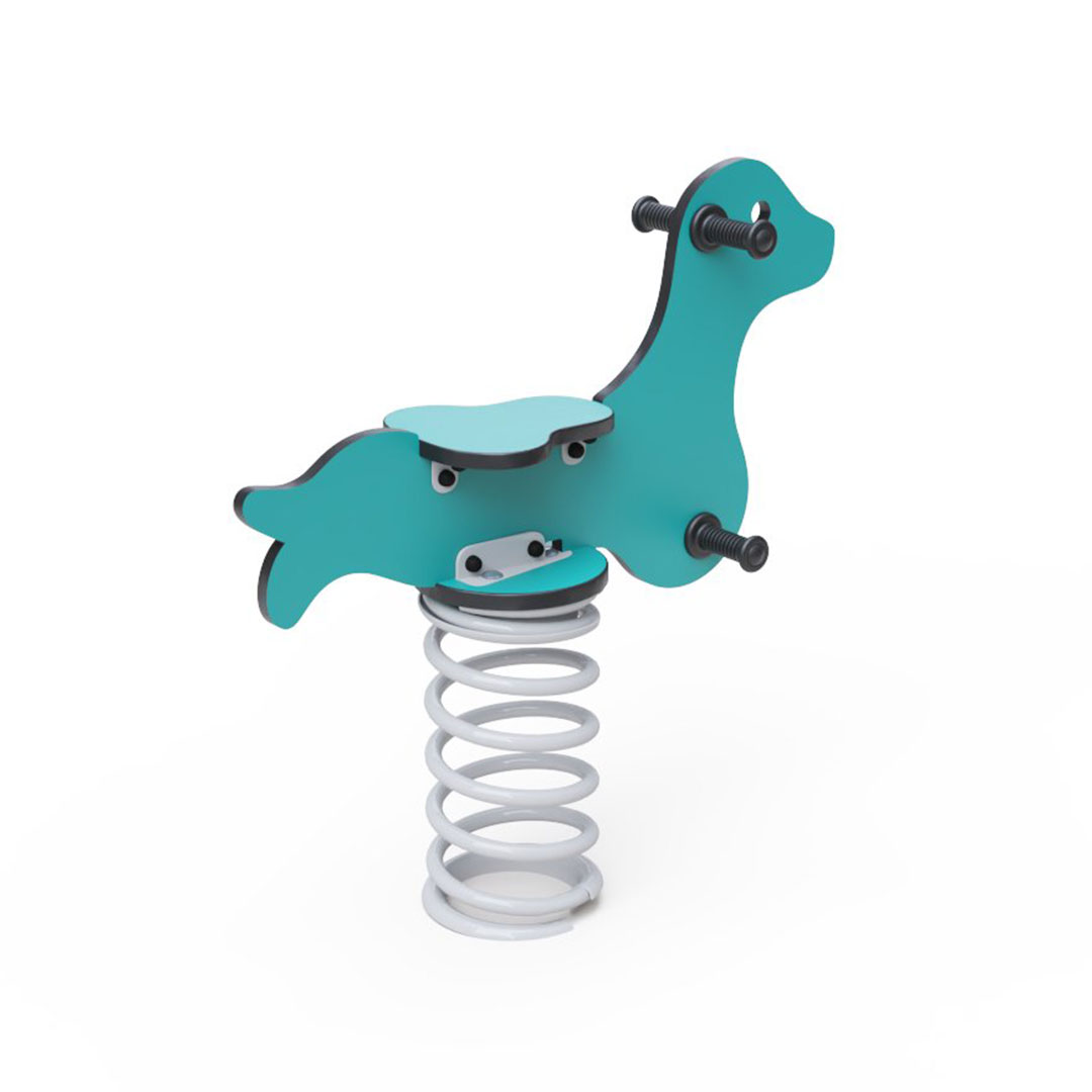 Materials and construction of the spring rocker with a seal motif ensure long life and safety. The steel spring with a durable surface treatment and HPL material guarantee durability, color stability, and safety. HPL material is chemically resistant, UV resistant, non-toxic, recyclable, and shatterproof, ensuring children are protected from sharp edges or fragments. Spring rockers can be placed on grass, playgrounds with gravel or sand, or you can use a grass reinforcement mat, rubber mat, or EPDM underneath. All spring rockers comply with the safety standard STN EN 1176.