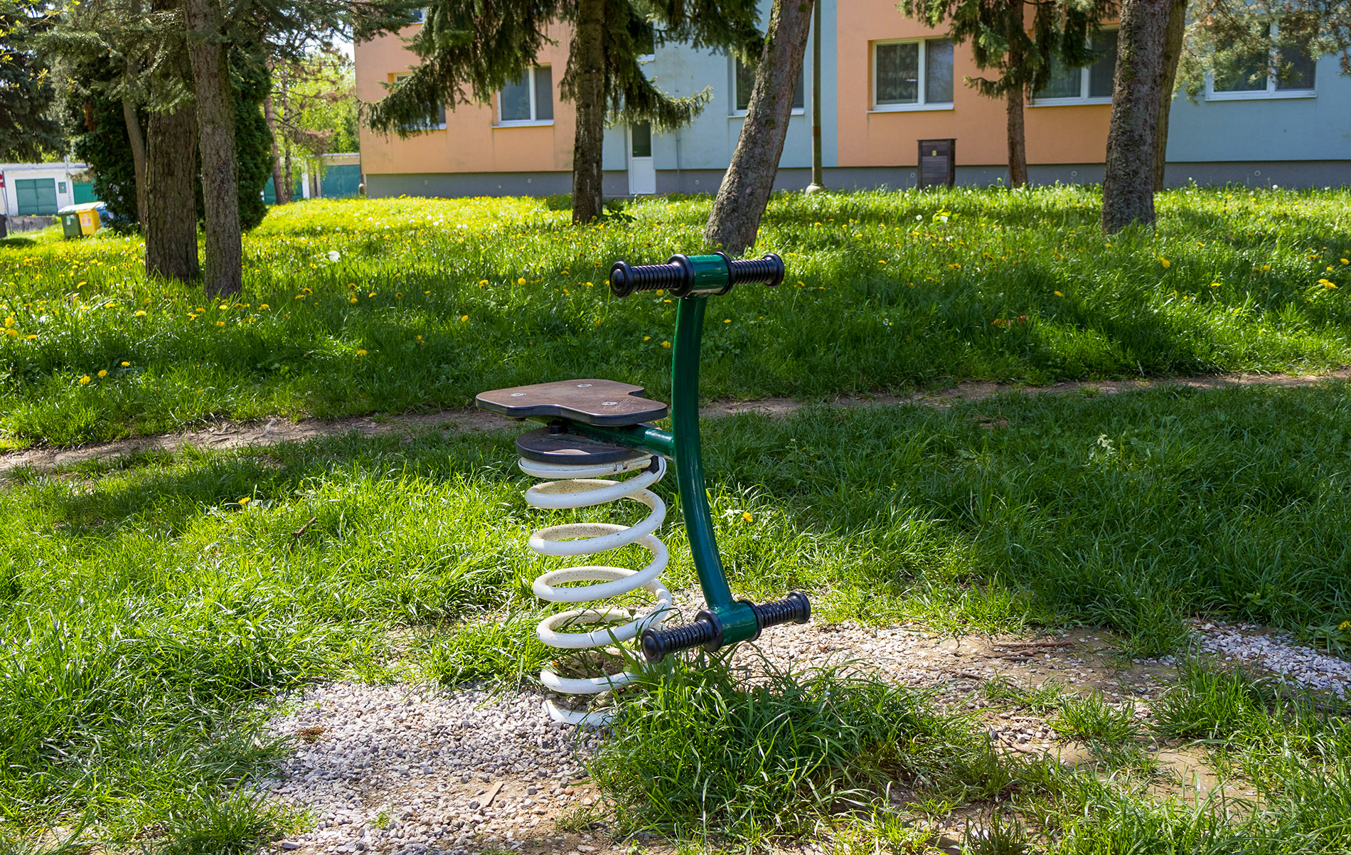 Materials and construction of the spring rocker ensure long life and safety. The steel spring with a durable surface treatment and HPL material guarantee long life, color stability, and safety. HPL material is chemically resistant, UV resistant, non-toxic, recyclable, and shatterproof, ensuring that children are protected from sharp edges or fragments. Spring rockers can be placed on grass, playgrounds with gravel or sand, or you can use a grass reinforcement mat, rubber mat, or EPDM under the rocker. All spring rockers comply with the safety standard STN EN 1176.