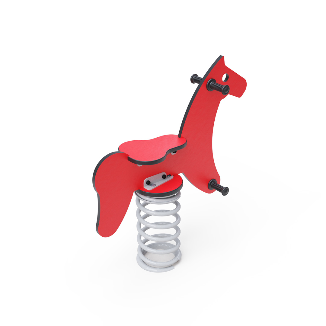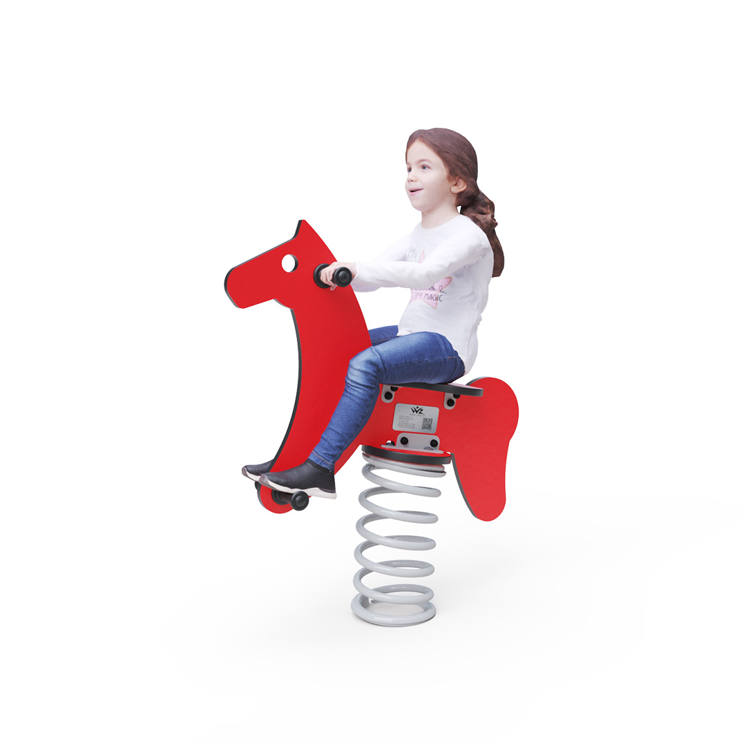 Materials and construction of the spring rocker with a horse motif ensure long life and safety. The steel spring with a durable surface treatment and HPL material guarantee long life, color stability, and safety. HPL material is chemically resistant, UV resistant, non-toxic, recyclable, and shatterproof, ensuring that children are protected from sharp edges or fragments. Spring rockers can be placed on grass, playgrounds with gravel or sand, or you can use a grass reinforcement mat, rubber mat, or EPDM under the rocker. All spring rockers comply with the safety standard STN EN 1176.
