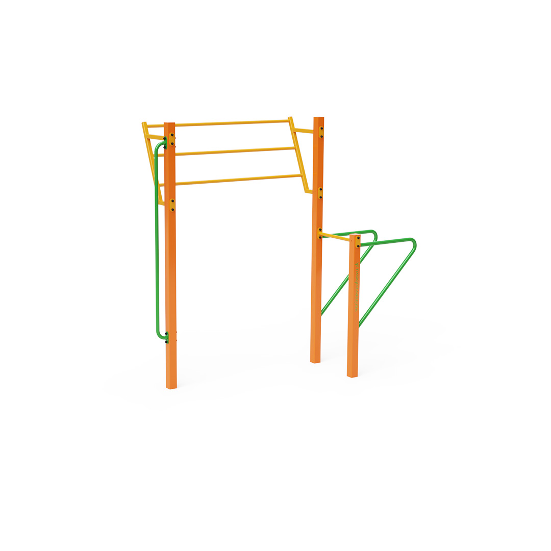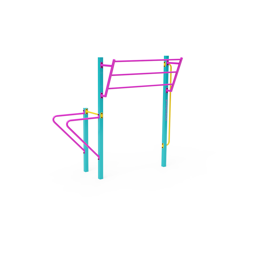 Workout is an increasingly popular form of outdoor exercise that primarily uses one's body weight. The diversity of exercises enabled by workout equipment and setups, combined with the fresh air environment, makes the activity varied and engaging. This not only benefits physical health but also contributes to mental well-being.This small street workout set includes bars, an inclined ladder, and a vertical bar.