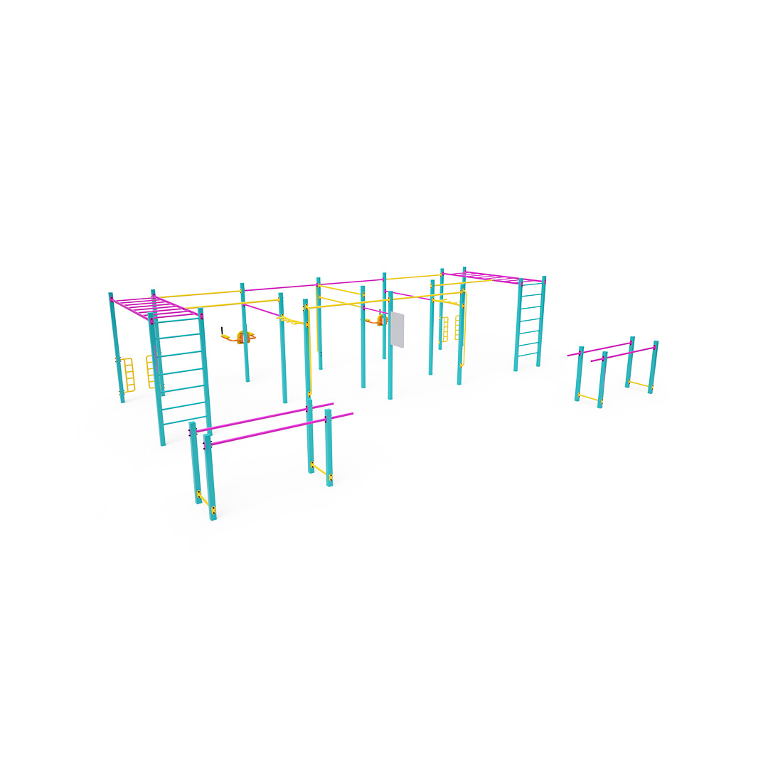 Workout is an increasingly popular form of outdoor exercise that primarily uses one's body weight. The diversity of exercises enabled by workout equipment and setups, combined with the fresh air environment, makes the activity varied and engaging. This not only benefits physical health but also contributes to mental well-being.This medium-sized set includes multiple bars of varying heights, ladders, and wall bars, complemented by two standalone parallel bars.