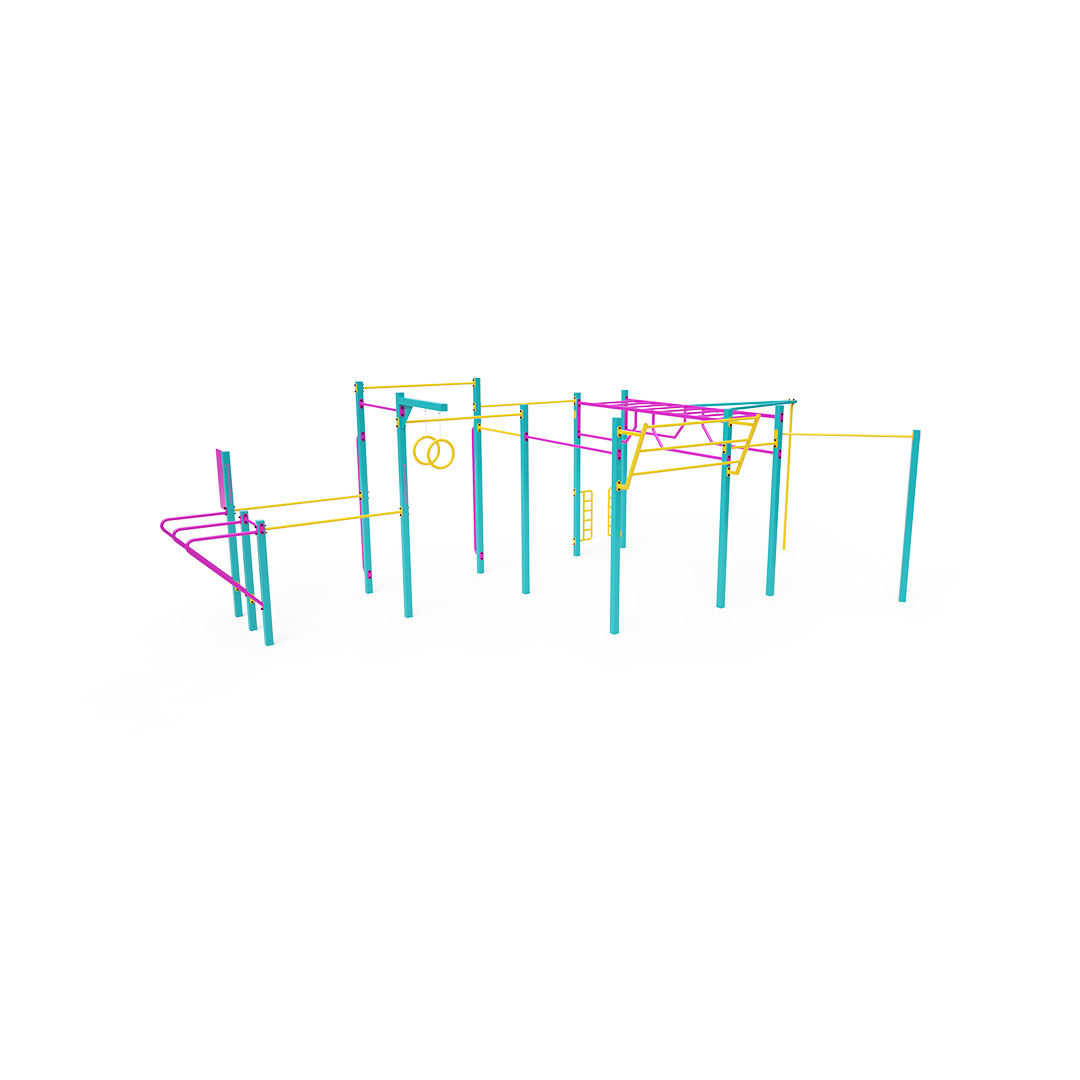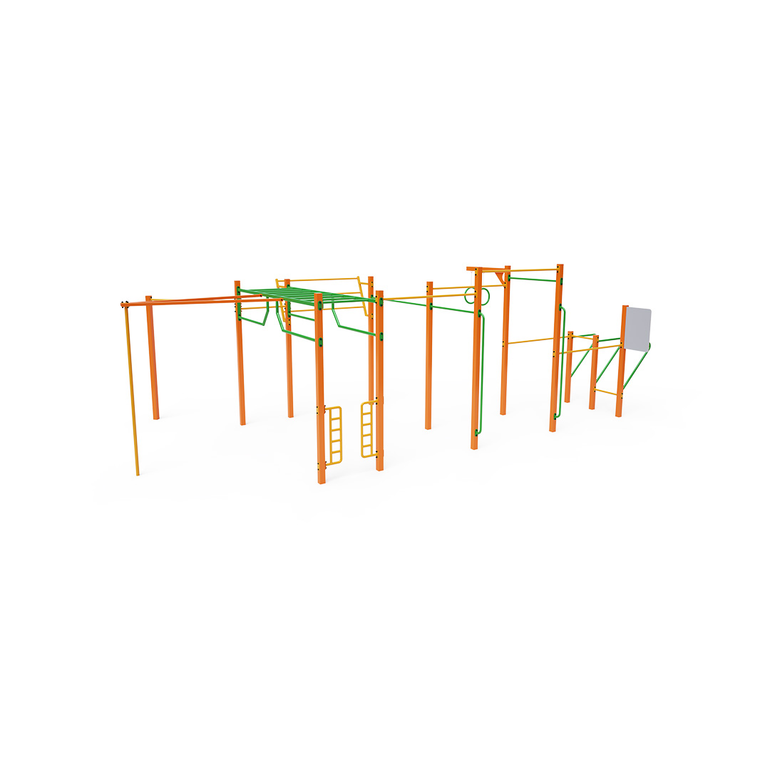 Workout is an increasingly popular form of outdoor exercise that primarily uses one's body weight. The diversity of exercises enabled by workout equipment and setups, combined with the fresh air environment, makes the activity varied and engaging. This not only benefits physical health but also contributes to mental well-being.This medium-sized set includes several horizontal bars of varying heights, vertical bars, and an inclined wall bar. It is complemented by double parallel bars, a horizontal ladder, a vertical ladder, rings, a pole dance pole, and a vertical wall bar for push-ups.