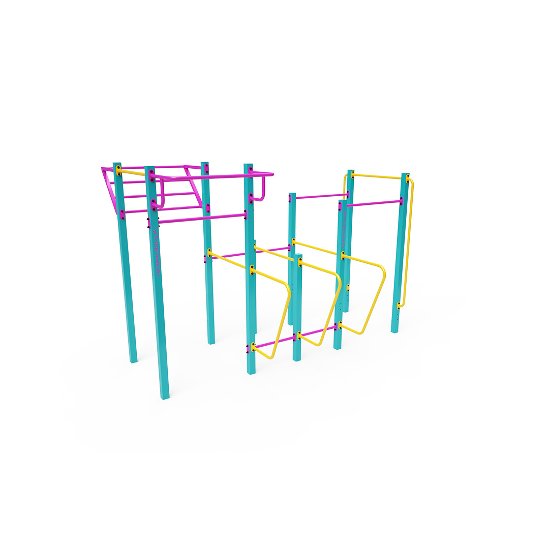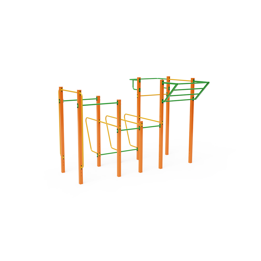 Workout is an increasingly popular form of outdoor exercise that primarily uses one's body weight. The diversity of exercises enabled by workout equipment and setups, combined with the fresh air environment, makes the activity varied and engaging. This not only benefits physical health but also contributes to mental well-being.This medium-sized set includes several horizontal bars of varying heights, vertical bars, and an inclined wall bar. It is complemented by two sets of double parallel bars and a protruding bar.