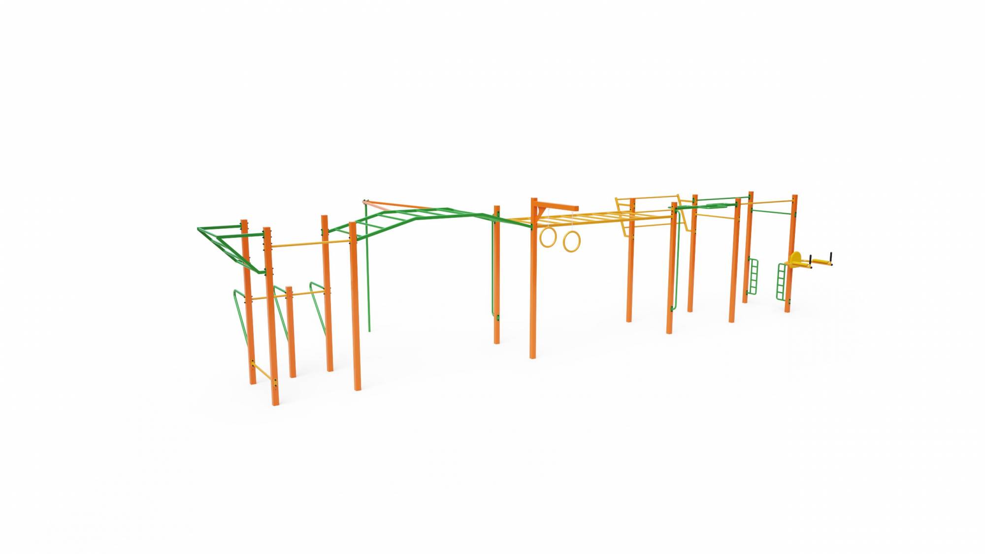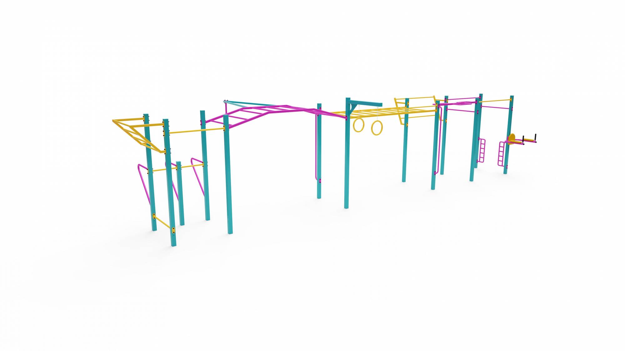 Workout is an increasingly popular form of outdoor exercise that primarily utilizes body weight. The exercise is diverse due to the fresh air environment and the wide range of exercises that the workout elements and setups allow. It benefits not only physical but also mental well-being.Large setup with horizontal bars of various heights, vertical bars, double parallel bars, horizontal ladders, and is complemented by rings, an inclined ladder, an abdominal exerciser, a ladder for push-ups, a multi-segment bar, and a pole dance bar.