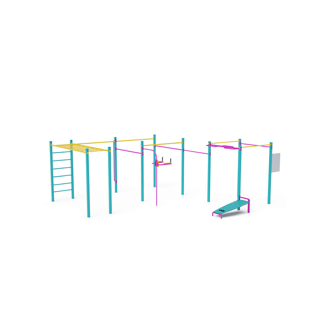 Workout is becoming an increasingly popular way to exercise outdoors, primarily using body weight. The exercises are diverse thanks to the fresh air environment and the wide range of exercises that the workout elements and setups allow. It benefits both physical and mental well-being.This large setup includes horizontal bars of various heights, vertical bars, ladders, a multi-segment bar, an abdominal exerciser, and a sit-up bench.
