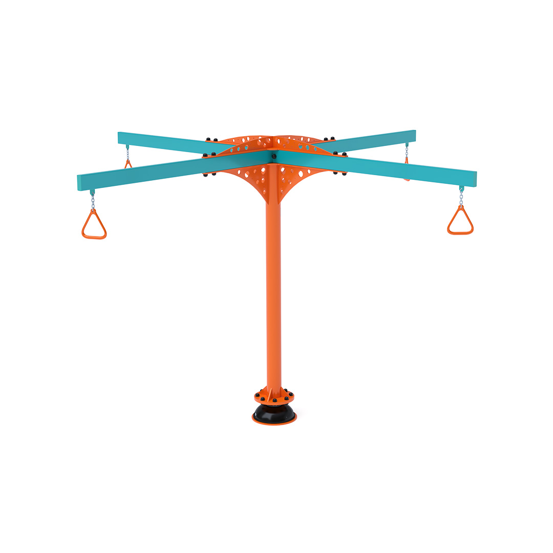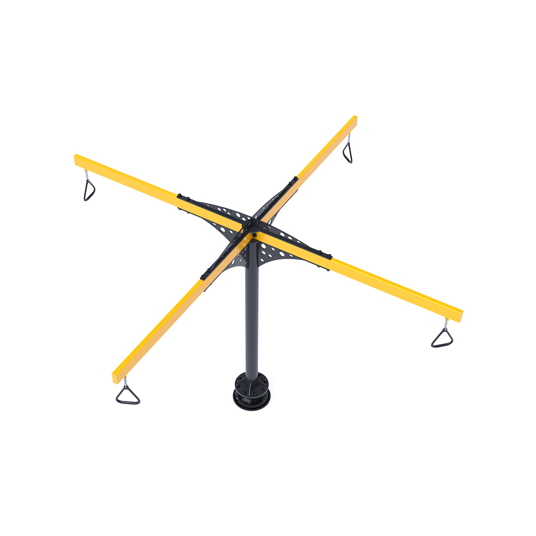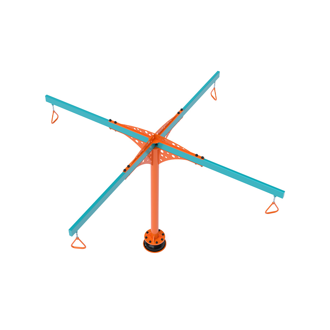 The carousel that attracts not only older children to play. Rotating handles are attached to the structure using chains to ensure long life and durability. The children's suspended carousel is made of galvanized steel, finished with powder-coated paint. It is designed with a focus on achieving long life and operational safety.