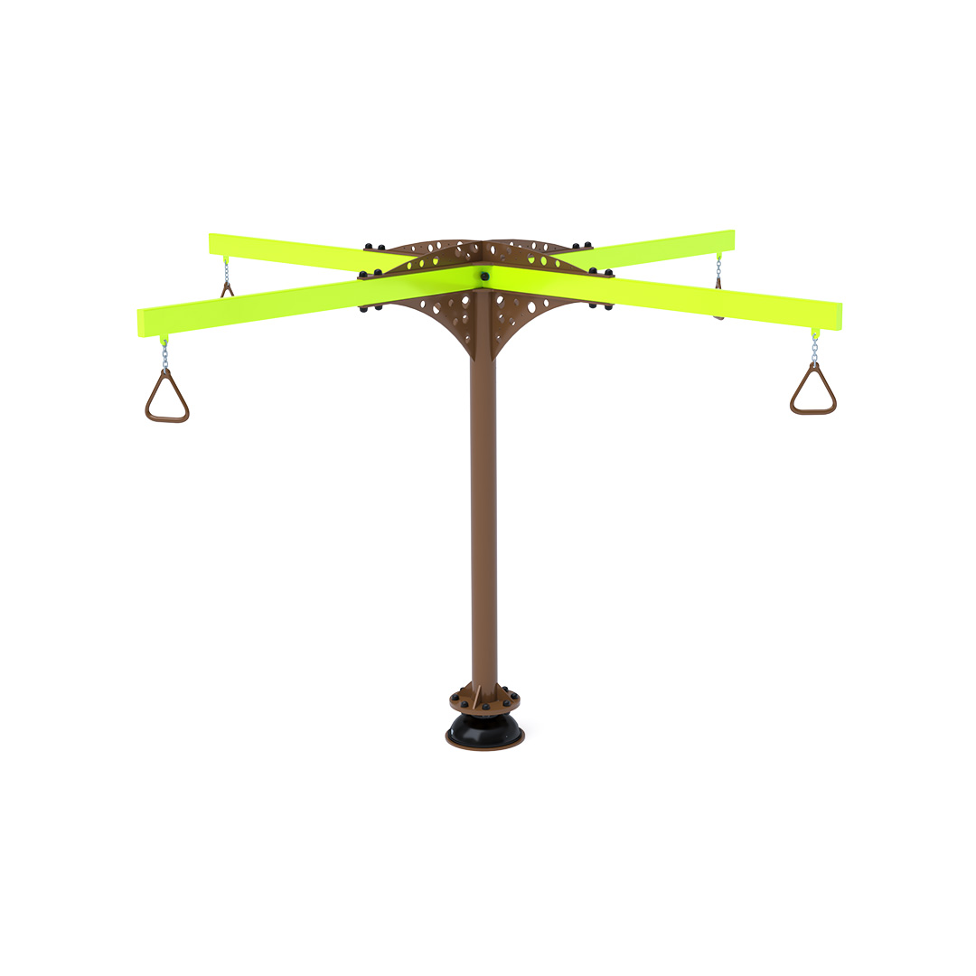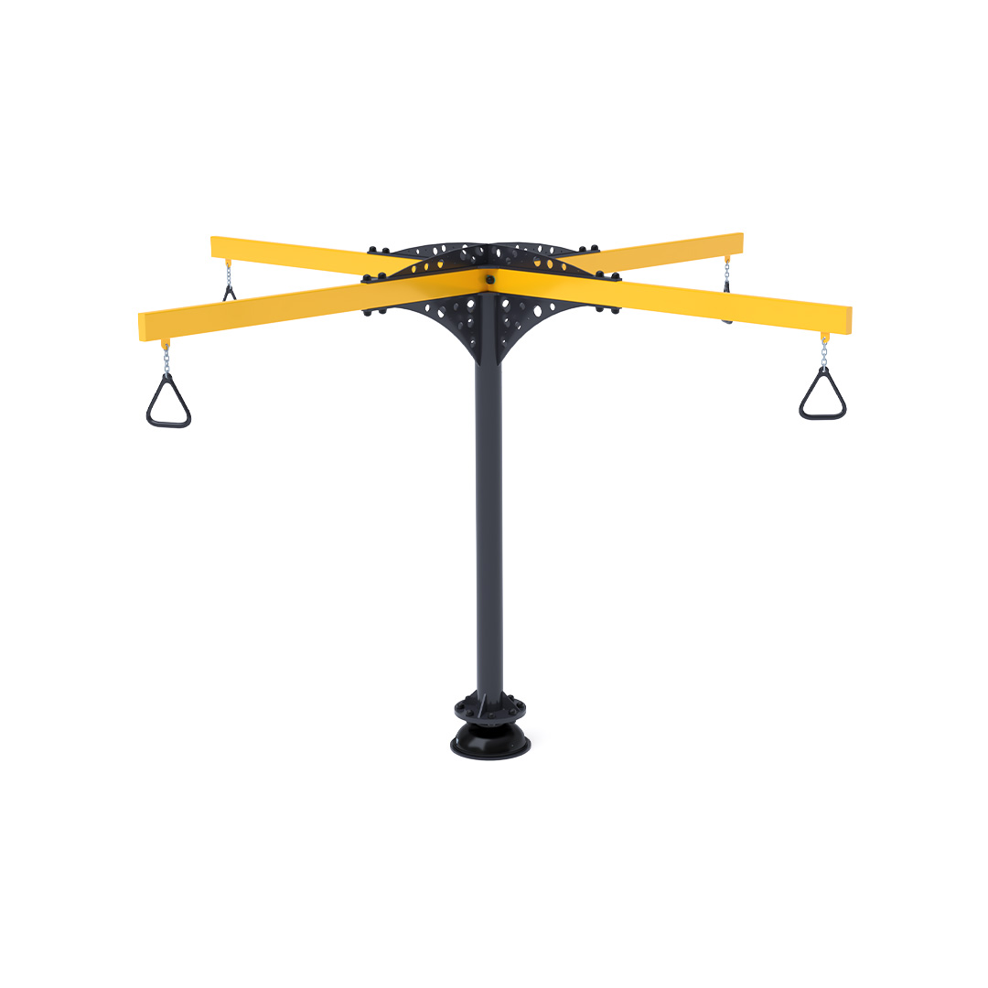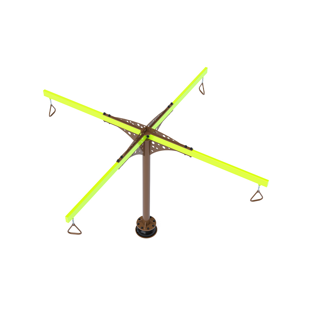 The carousel that attracts not only older children to play. Rotating handles are attached to the structure using chains to ensure long life and durability. The children's suspended carousel is made of galvanized steel, finished with powder-coated paint. It is designed with a focus on achieving long life and operational safety.