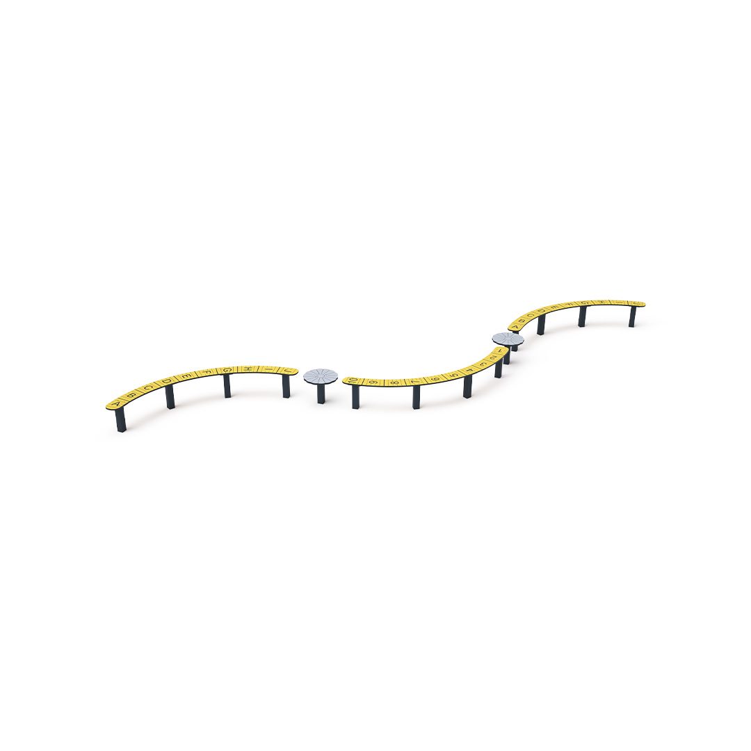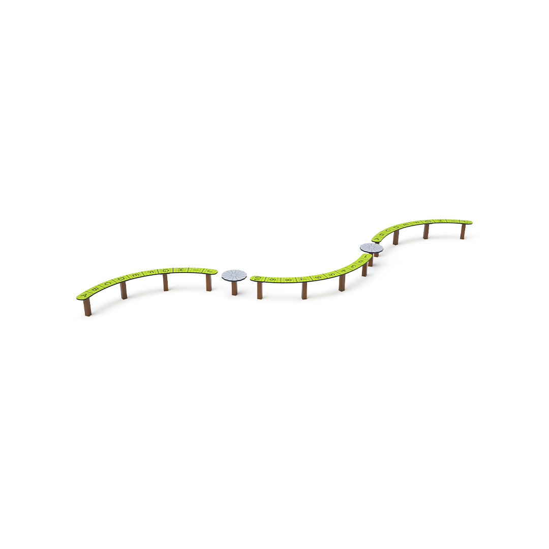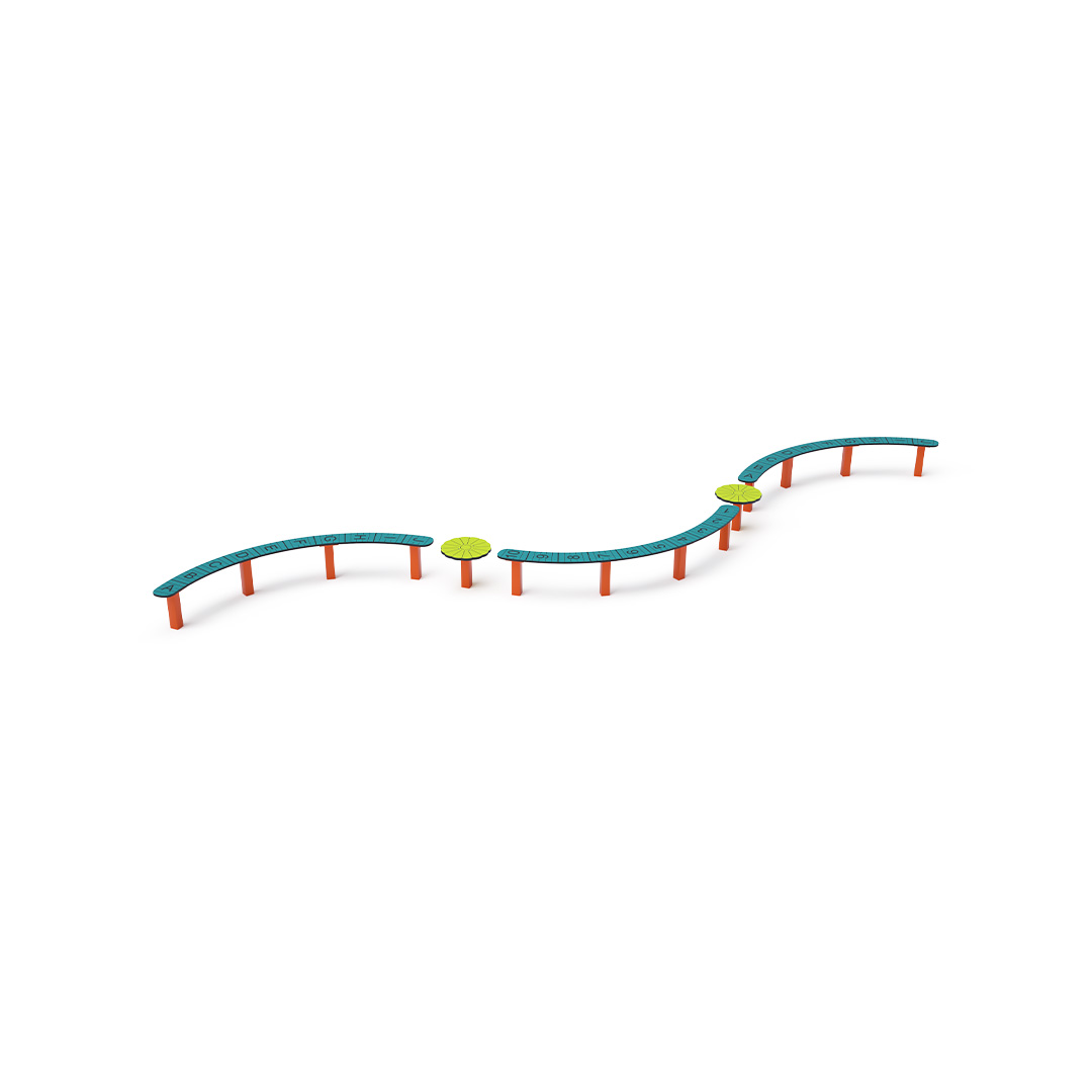 The maintenance-free triple balance beam is a playground element that helps children train their coordination and balance. It is made of hot-dip galvanized steel. The walking surface is made of anti-slip HPL material. Stainless steel fasteners are used. A grassy surface can be used as an impact-absorbing area, although we recommend using a grass reinforcement grid.