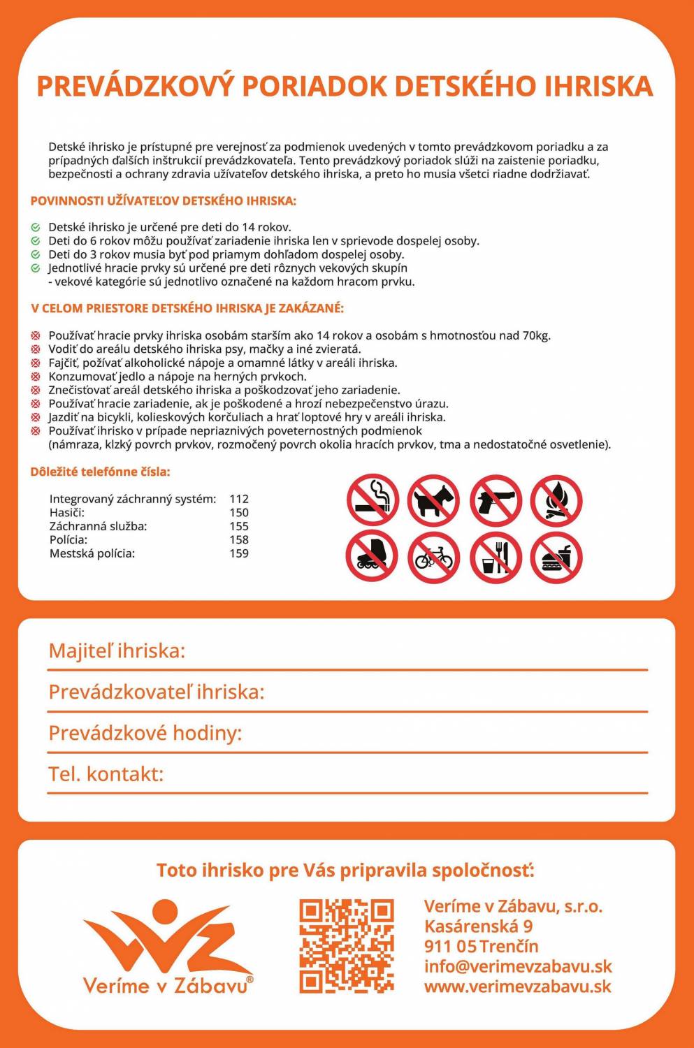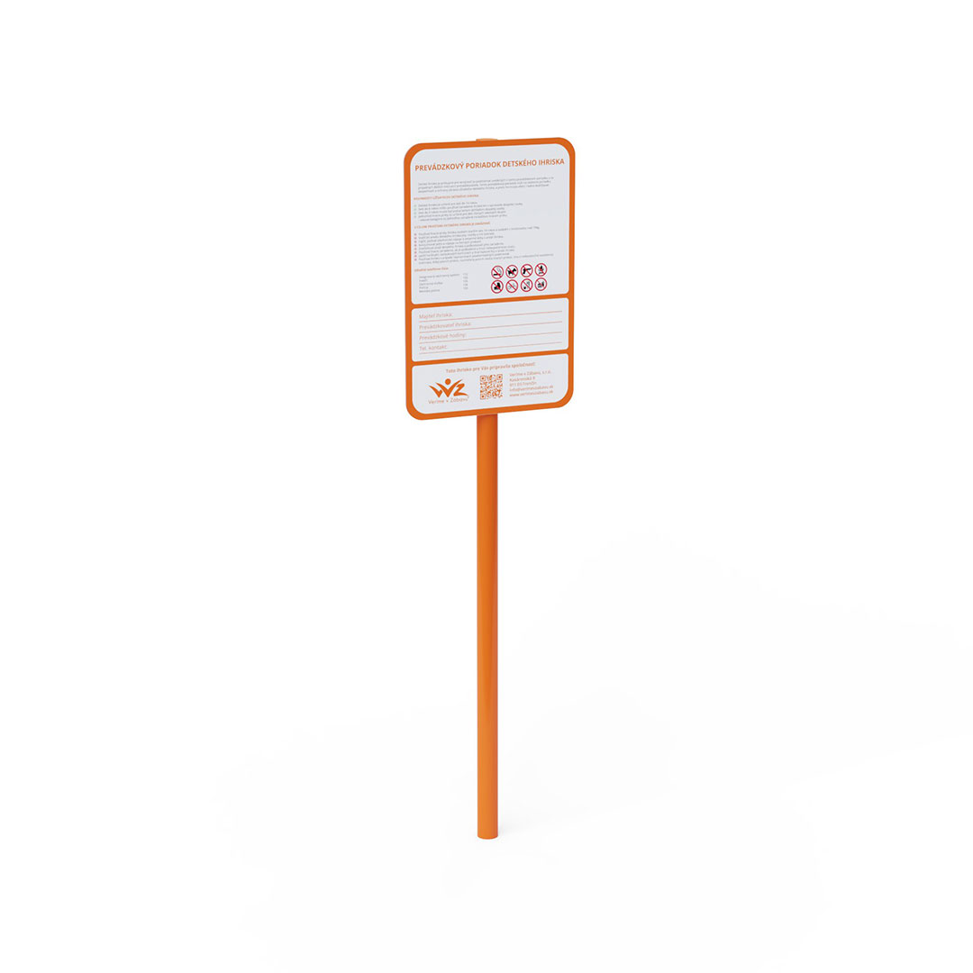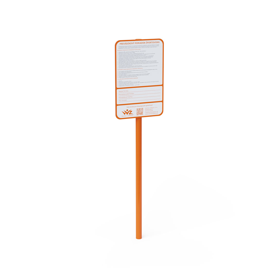 The construction of the information board is made from a steel profile with a diameter of 60,6 mm, treated with hot-dip galvanization and finished with a baked KOMAXIT paint coating. The board displaying the operating rules for the playground or sports facility is made from Dibond material, measuring 75 x 50 cm.