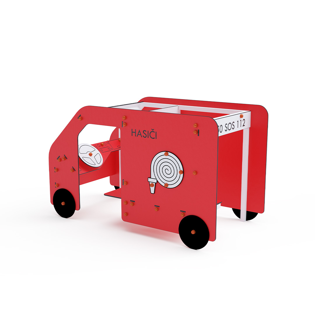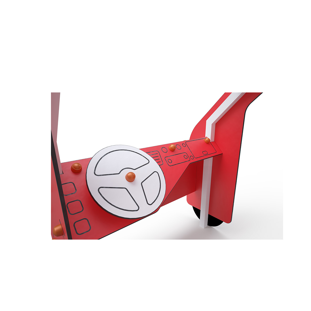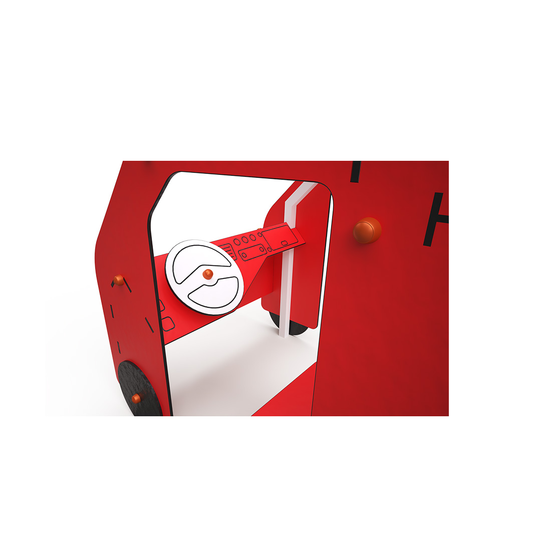 The Fire Truck play vehicle is an ideal themed element for nurturing children's imagination and encouraging teamwork, making it suitable even for the youngest children. A rotating steering wheel and themed details enhance the immersive play experience. The steel structure is weather-resistant thanks to hot-dip galvanization and a durable powder coating. The HPL material is chemically resistant, UV-stable – colorfast, non-toxic, recyclable, and unbreakable, preventing injuries from sharp edges or splinters. All joints are stainless steel and covered with plastic caps to ensure durability and safety.