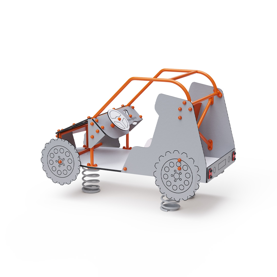 The Moon Buggy is a perfect themed play element for stimulating children's imagination, making it ideal even for the youngest adventurers. A rotating steering wheel and navigation system, along with themed design details, enhance the immersive play experience. The steel structure is highly weather-resistant, protected by hot-dip galvanization and a durable powder-coated finish. The HPL panels are chemically resistant, UV-stable – colorfast, non-toxic, recyclable, and shatterproof, preventing injury from sharp edges or splinters. All connections are made of stainless steel and covered with plastic caps to ensure maximum safety and long-lasting durability.