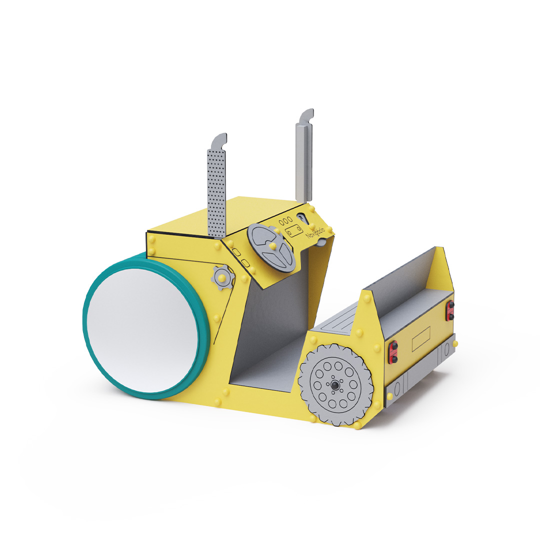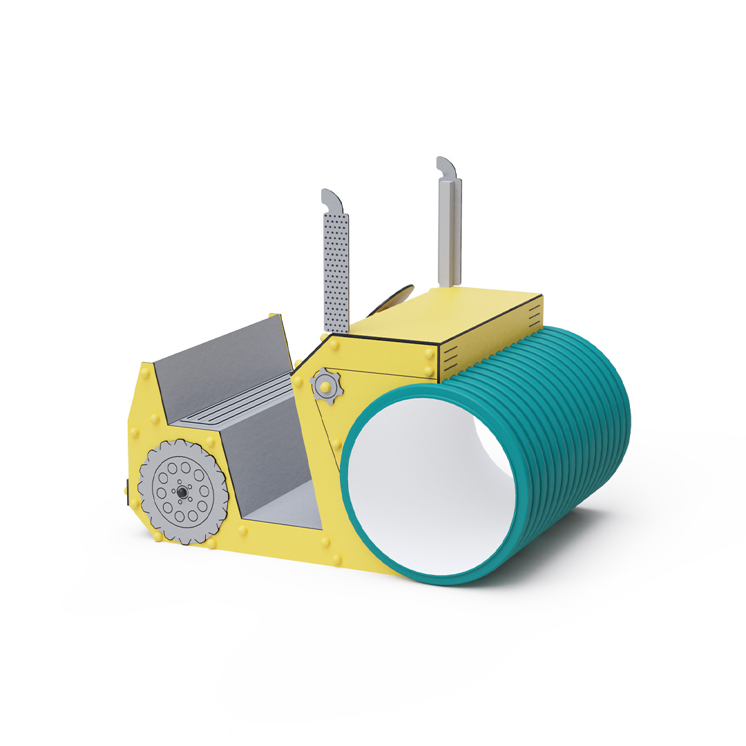 The Steamroller is a perfect themed play element for encouraging children's imagination, making it suitable even for the youngest players. A rotating steering wheel and navigation panel, together with playful design elements, create a highly immersive experience. The steel structure is weather-resistant thanks to hot-dip galvanization and a durable powder-coated finish. The HPL panels are chemically resistant, UV-stable – colorfast, non-toxic, recyclable, and shatterproof, eliminating the risk of injuries from sharp edges or splinters. All joints are made from stainless steel and covered with plastic caps to enhance durability and safety.
