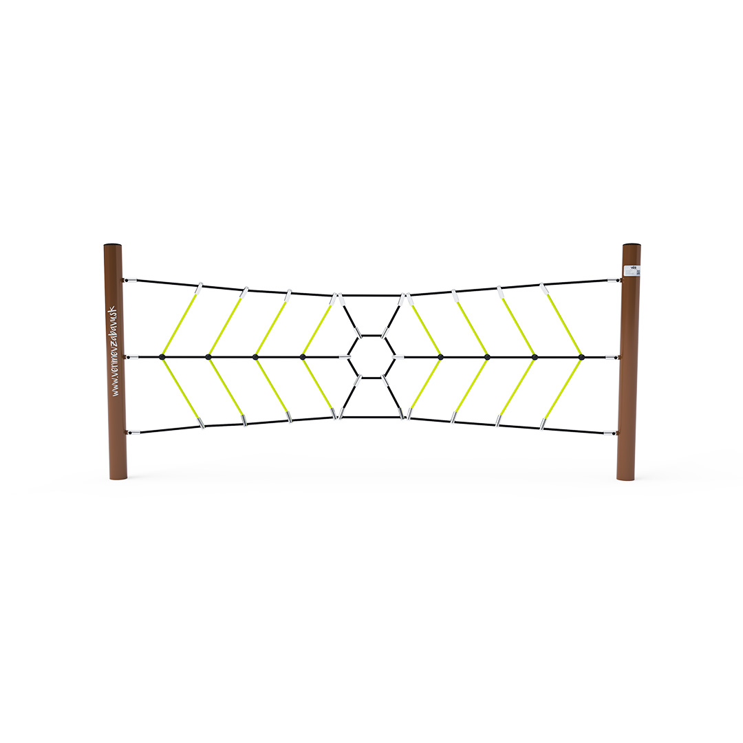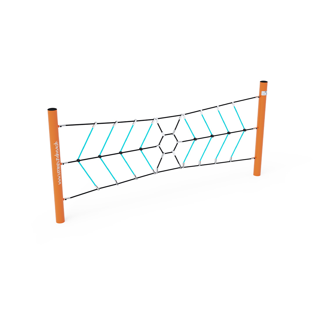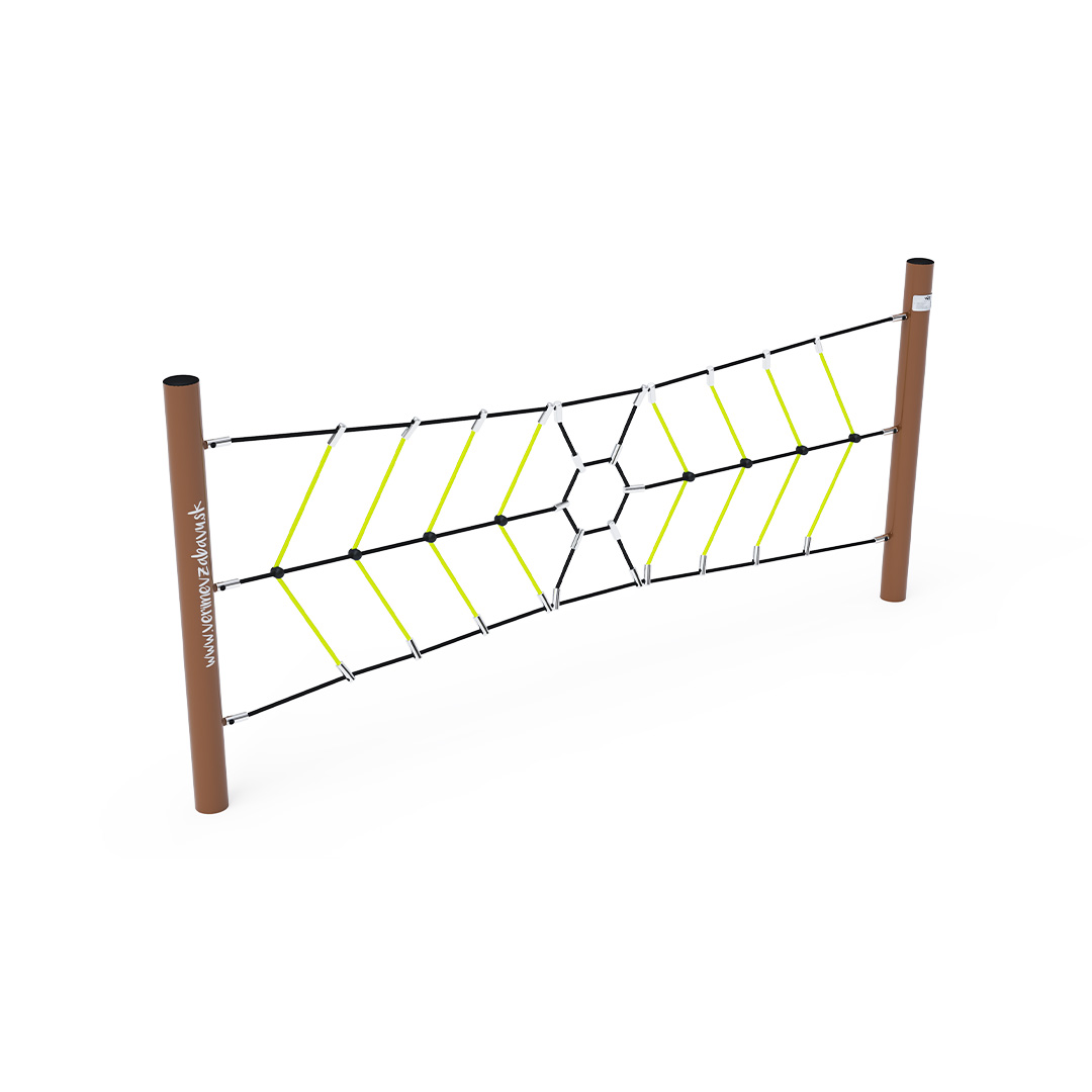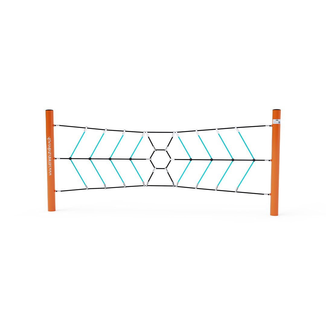 The monkey trail, featuring a vertical rope spider net, will challenge the arm strength of every child who dares to take on this mission. The play element is made of hot-dip galvanized steel with a high-quality surface finish. All joints are stainless steel and covered with plastic caps to enhance safety and prolong the lifespan of the connections. The ropes are made of polyester fibers wound around a central core. This rope construction increases its strength and resistance to mechanical stress. Polyester itself has many positive properties. It is resistant to microorganisms and weather conditions, dries quickly after rain, retains its color, and is characterized by high durability.