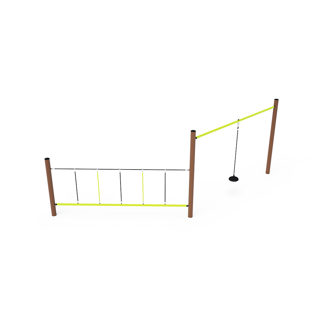 The play element is made of galvanized steel with a high-quality surface finish. The joints are stainless steel and covered with plastic caps to enhance safety and the durability of the connections. The ropes are made of polyester fibers wound around a central core. This construction increases its strength and resistance to mechanical stress. Polyester itself has many positive qualities – it is resistant to microorganisms and weather conditions, dries quickly after rain, retains its color, and is highly durable.