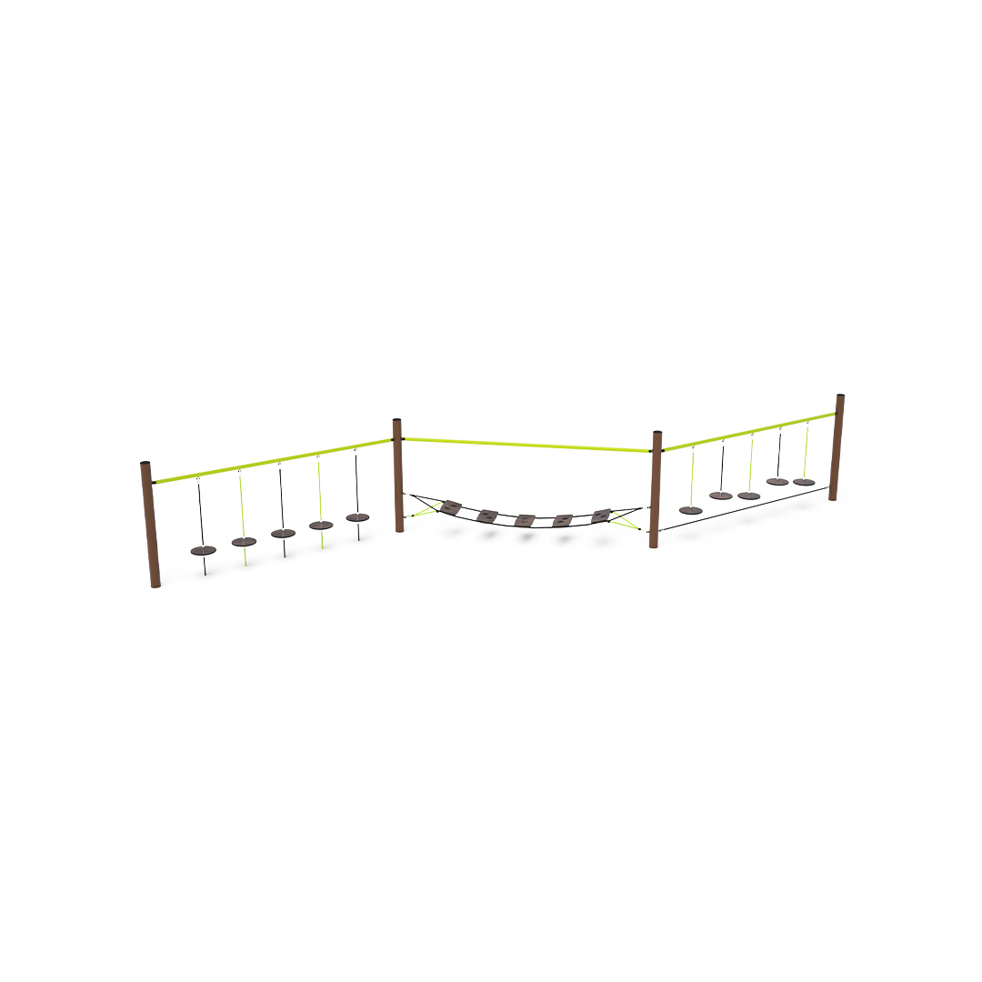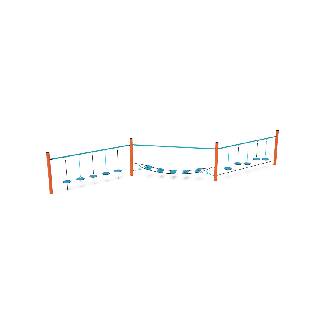 The play element is made of hot-dip galvanized steel with a high-quality surface finish. The joints are stainless steel and covered with plastic caps to increase safety and durability. The ropes are made from polyester fibers wound around the center. This construction increases the rope’s strength and resistance to mechanical stress. Polyester has many beneficial properties: it is resistant to microorganisms and weather conditions, dries quickly after rain, retains its color, and is highly durable.