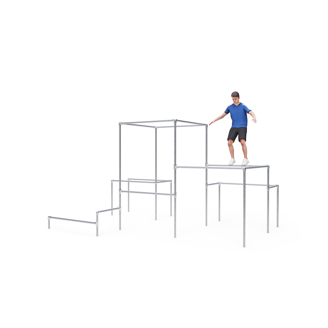 Parkour is a discipline based on the ability to overcome obstacles safely, smoothly, and effectively using one’s own body, with an emphasis on practical strength, endurance, and balance. Creativity, fluidity, and precision in overcoming obstacles are also crucial components. The VVZ-PP005 parkour playground is one of the smaller setups. It consists of sixteen bars of varying heights. It provides a training space for both complete beginners and more experienced traceurs.The steel construction is weather-resistant thanks to hot-dip galvanization.
