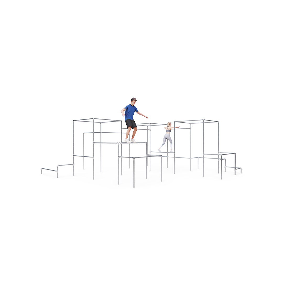 Parkour is a discipline based on the ability to overcome obstacles safely, smoothly, and effectively using one’s own body, with an emphasis on practical strength, endurance, and balance. Creativity, fluidity, and precision in overcoming obstacles are also crucial components. The VVZ-PP006 parkour playground is medium-sized in terms of the number of obstacles. The setup includes thirty-one bars of varying heights, two concrete walls, and one concrete wall. It provides a training space for both complete beginners and more experienced traceurs.The steel construction is weather-resistant thanks to hot-dip galvanization.