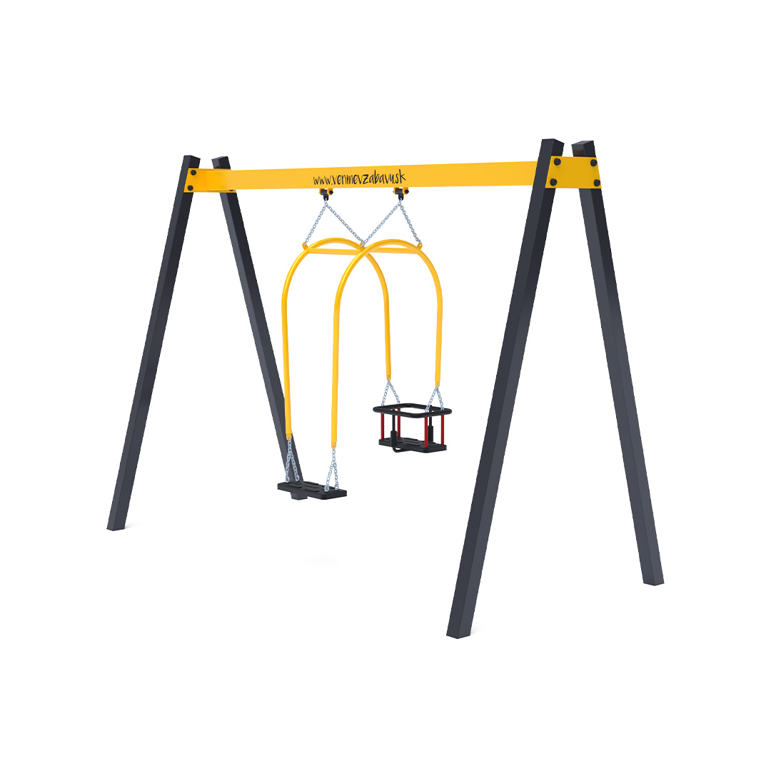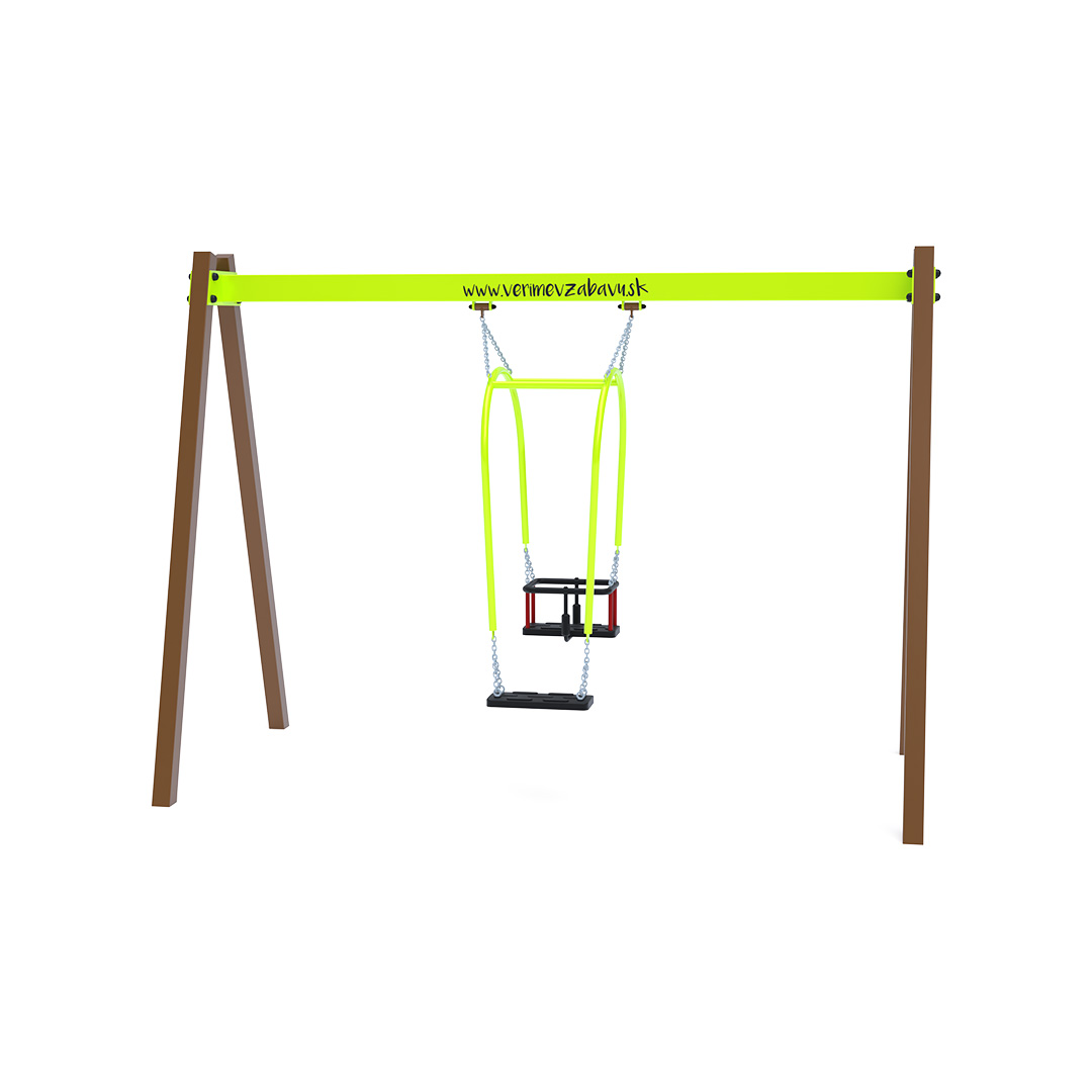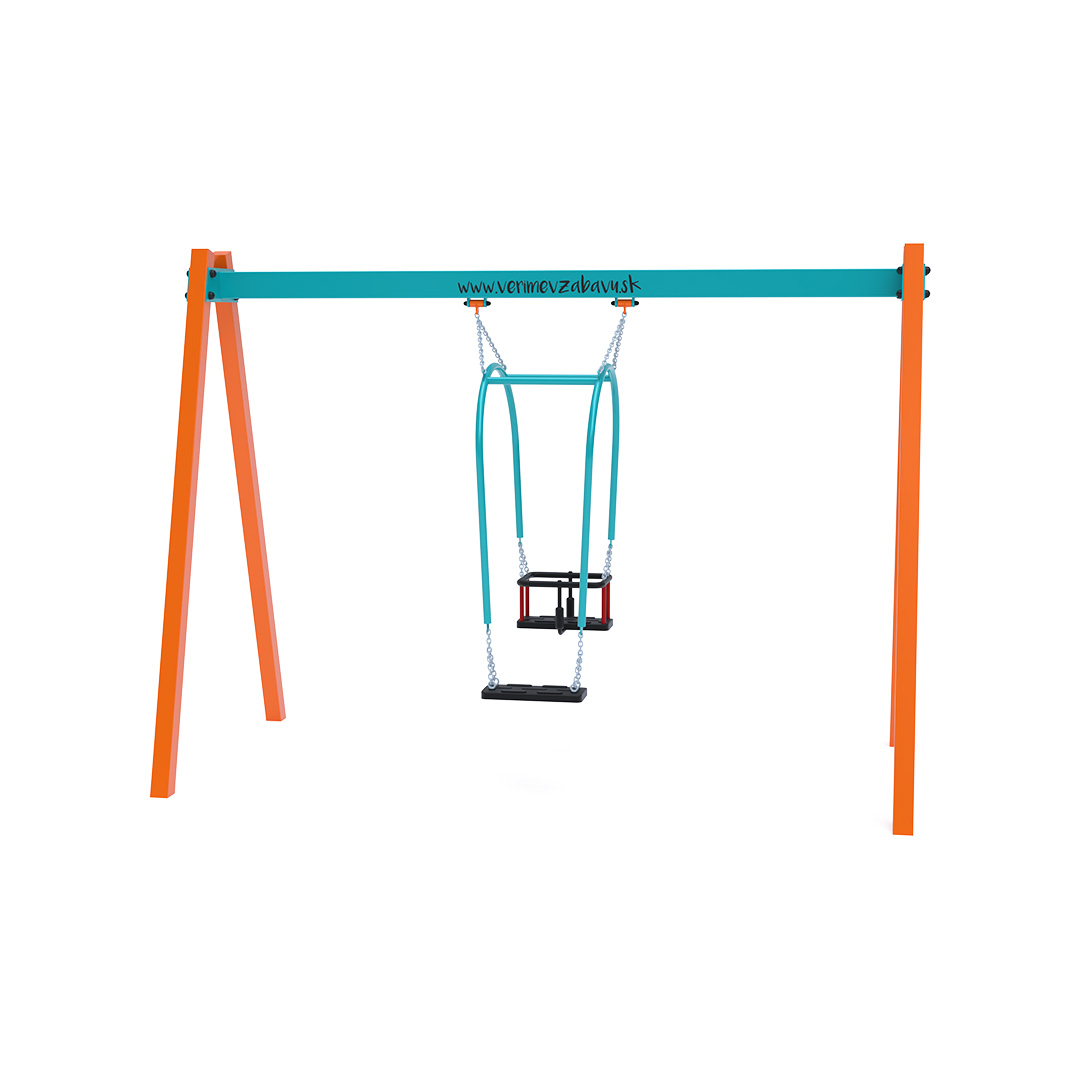 The VVZ-VH003 swing is certified according to the STN EN 1176 standard. It is recommended to use a grass mat as a fall area.
