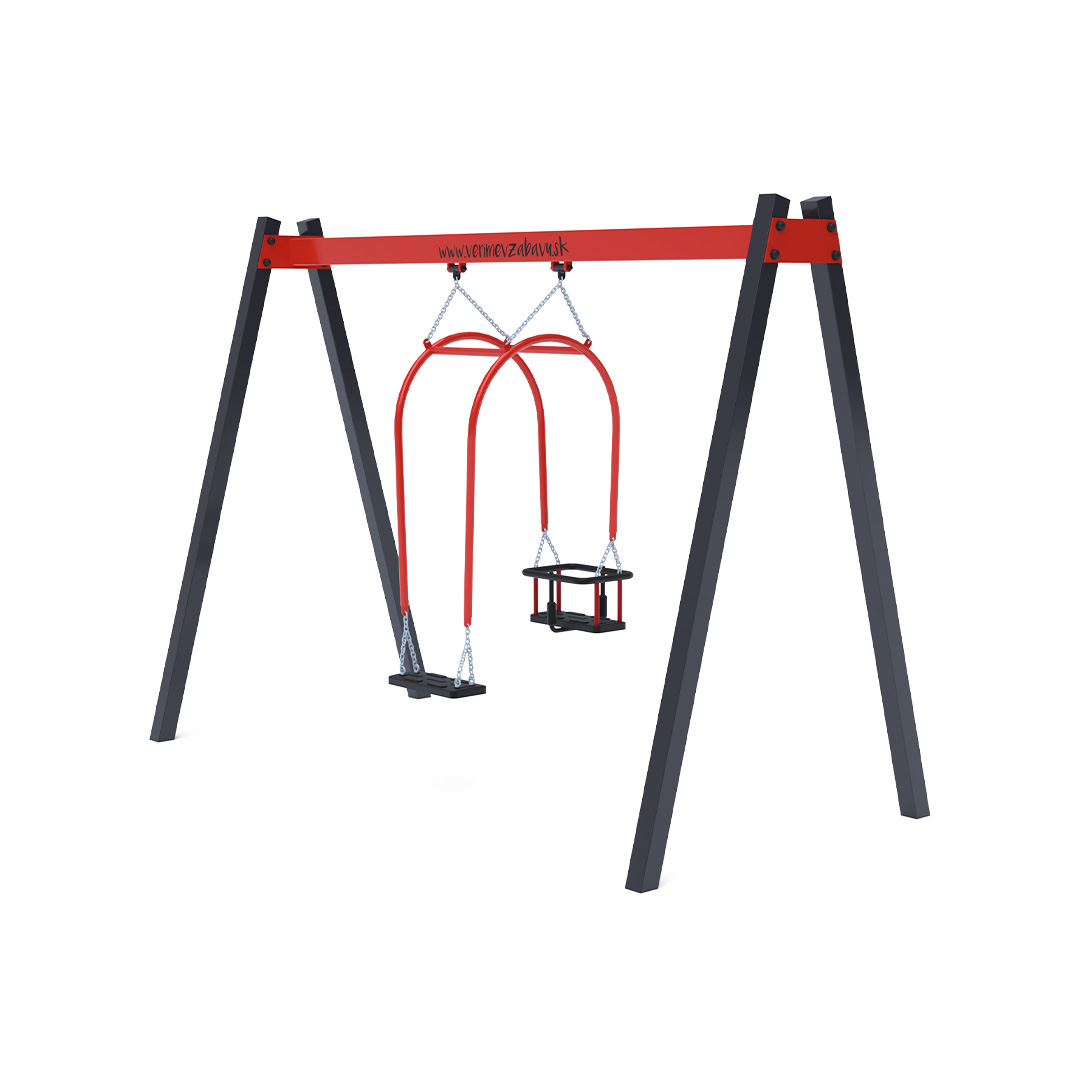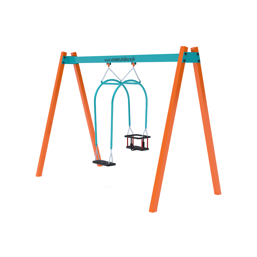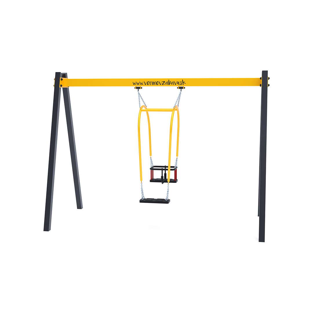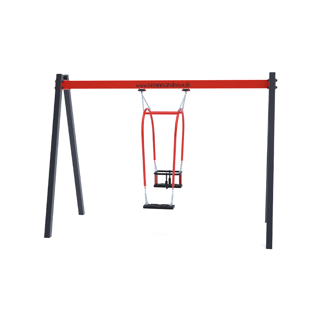 The VVZ-VH003 swing is certified according to the STN EN 1176 standard. It is recommended to use a grass mat as a fall area.