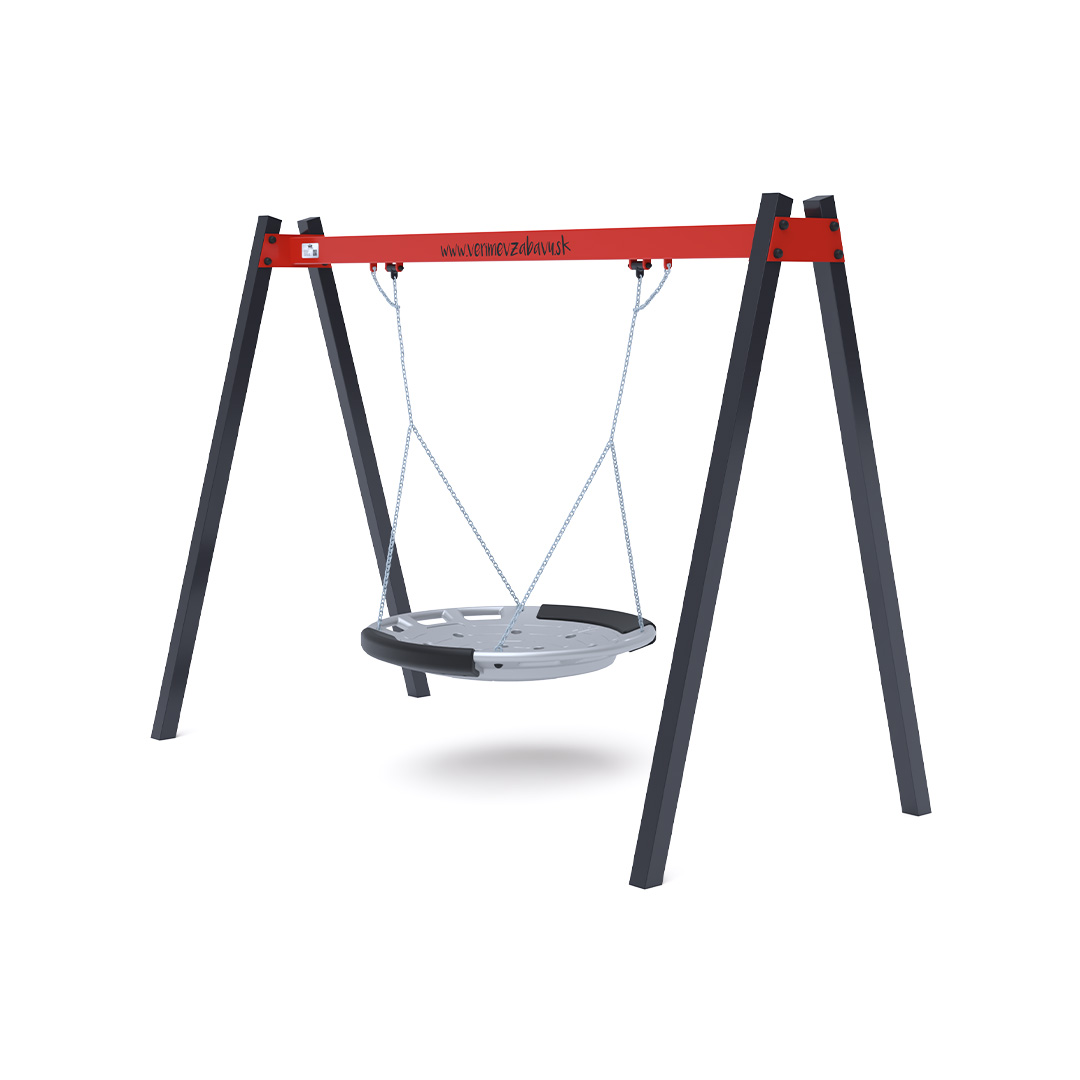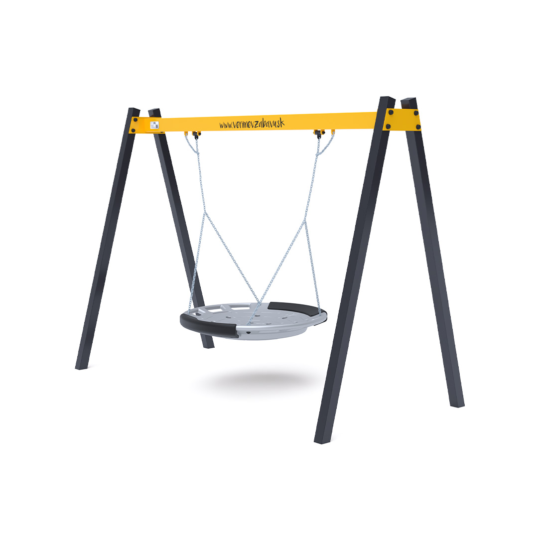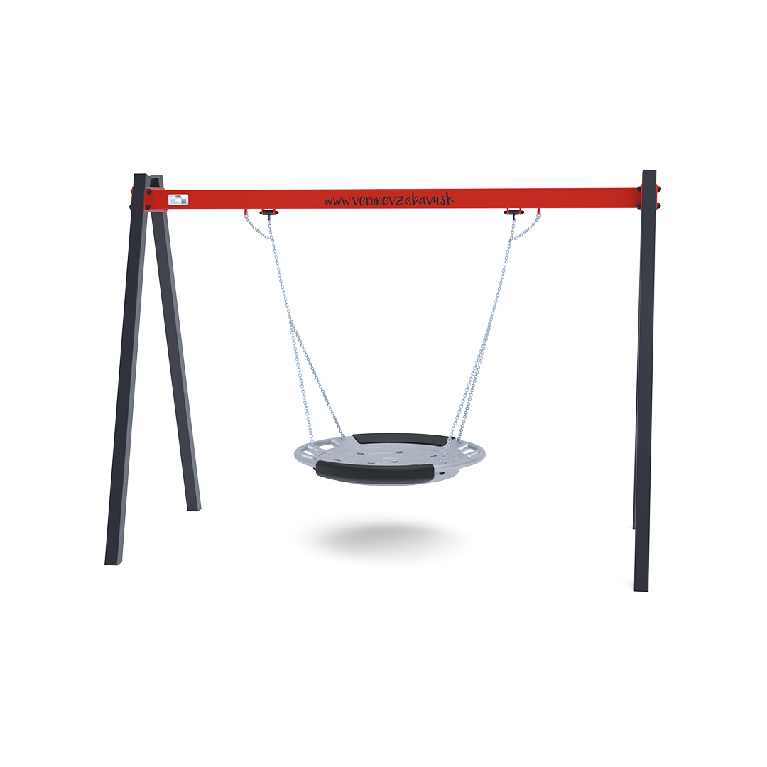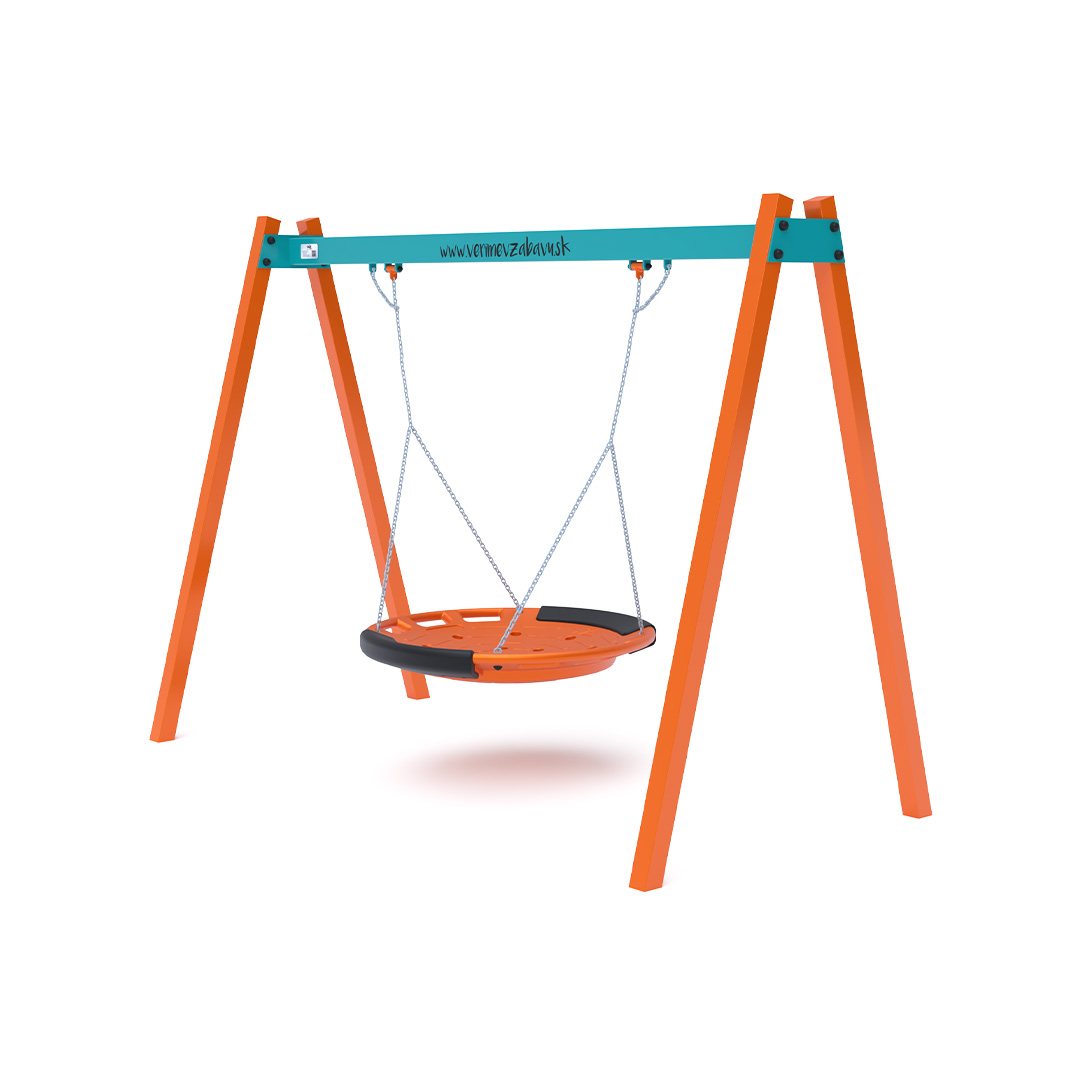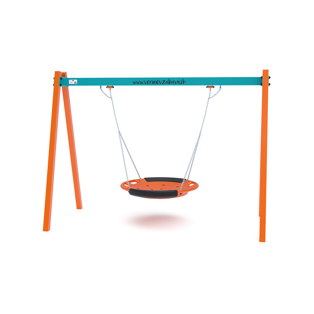 The hanging swing with a nest for 5 children is made from hot-dip galvanized steel, which is coated with powder-baked paint. The connecting materials are stainless steel and covered with plastic caps to increase durability and safety. The VVZ-VH005 swing is certified according to the STN EN 1176 standard. It is recommended to use a grass mat as the impact surface.