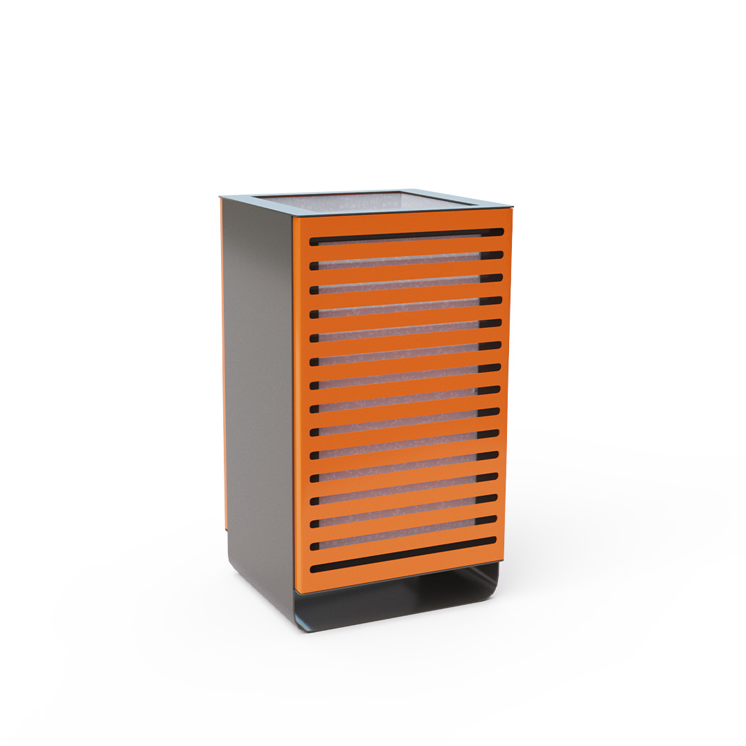 A designer waste bin, with a capacity of 60l, suitable not only for outdoor use - parks, playgrounds but also for indoor use - shopping centers, airport terminals, entrance halls, etc.